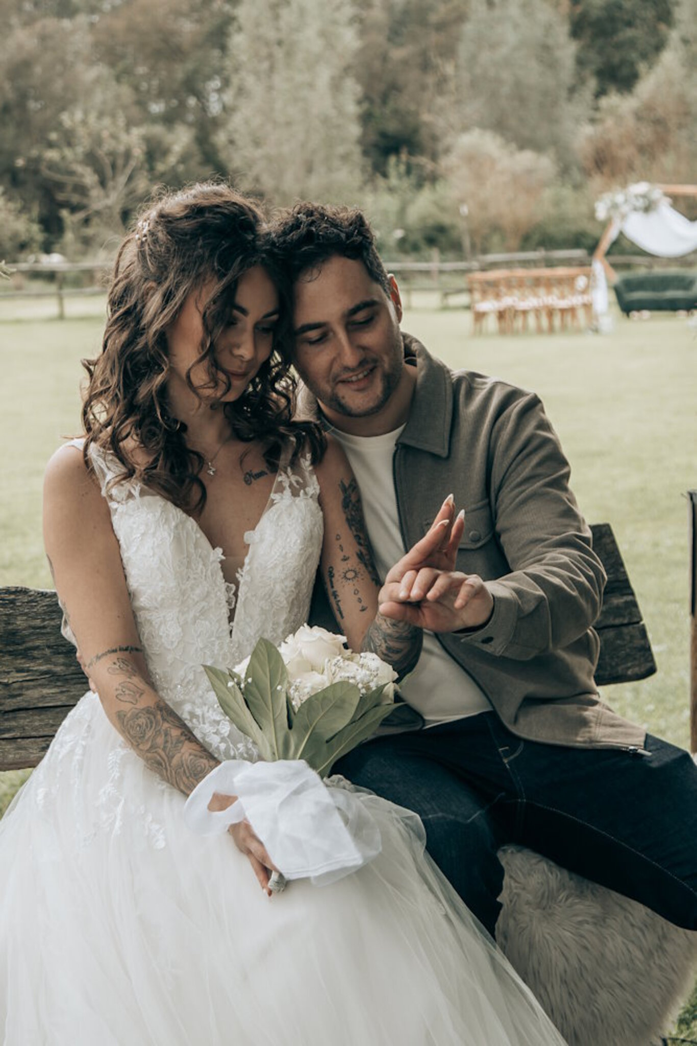 Bruidspaar kijkt naar ring
