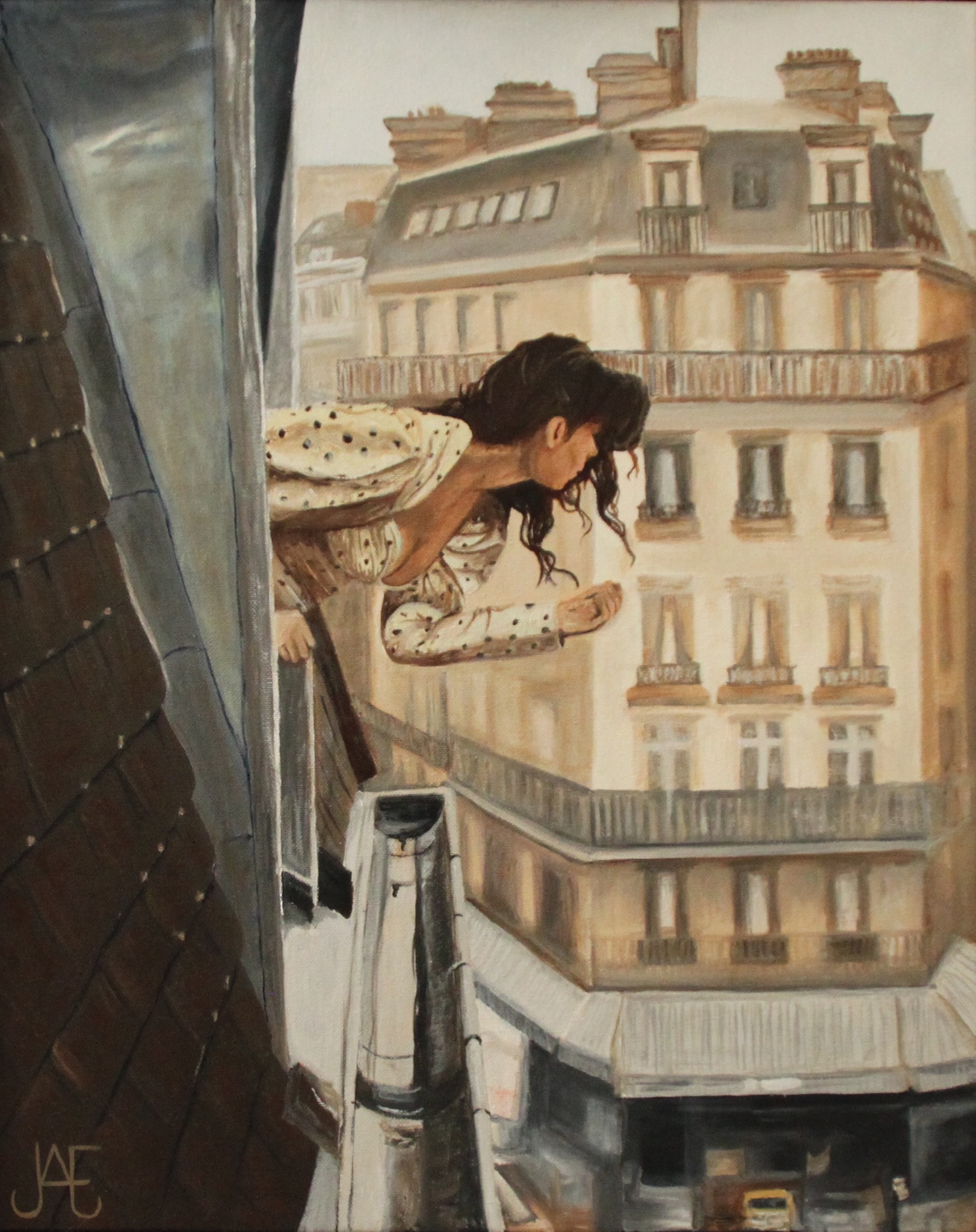 Vrouw Woman Olieverf Oilpainting Olieverfschilderij Parijs Balkon Paris Realistischekunst Balcony Realisticart Vrouwinparijs Womaninparis Womaninlove Loveparis Verliefdinparijs