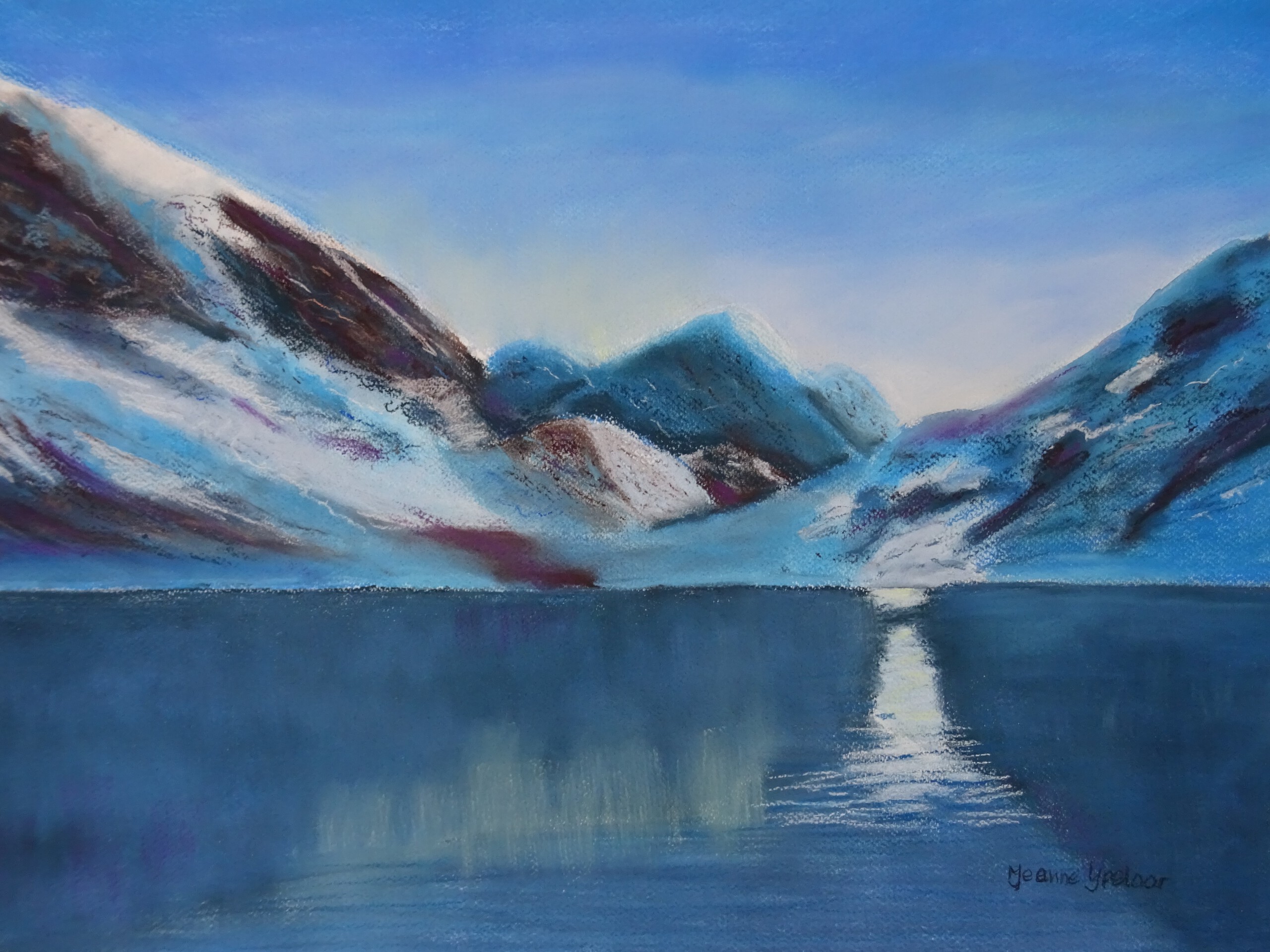 Dit schilderij is geschilderd op papier. Ik heb als basis gewerkt met Aquarel en daarna met pastelkrijt afgewerkt. Dit is een hele fijne manier om een schilderij te maken.