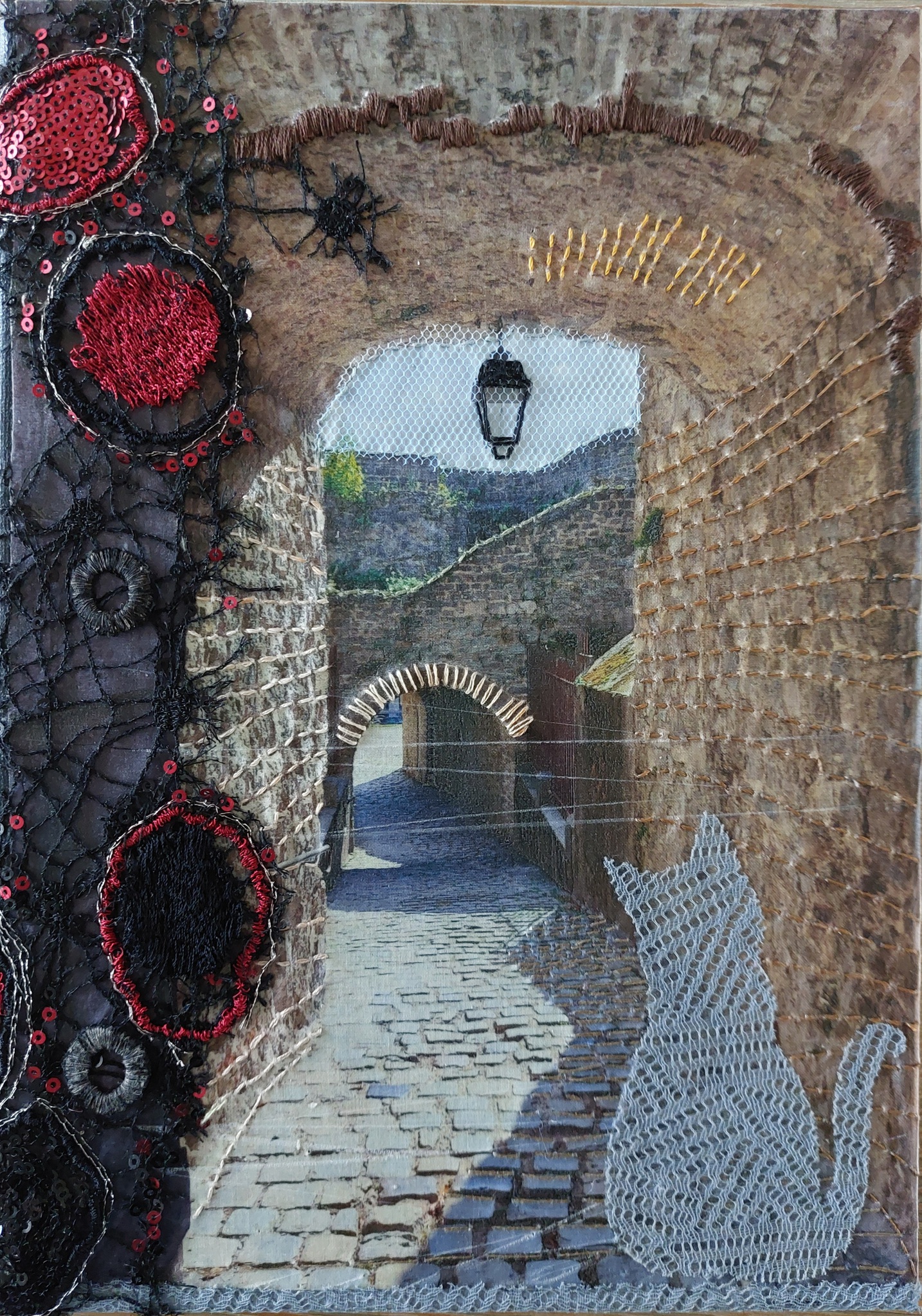 Frans dorpsgezicht met borduursel op canvas 30 x 21 cm