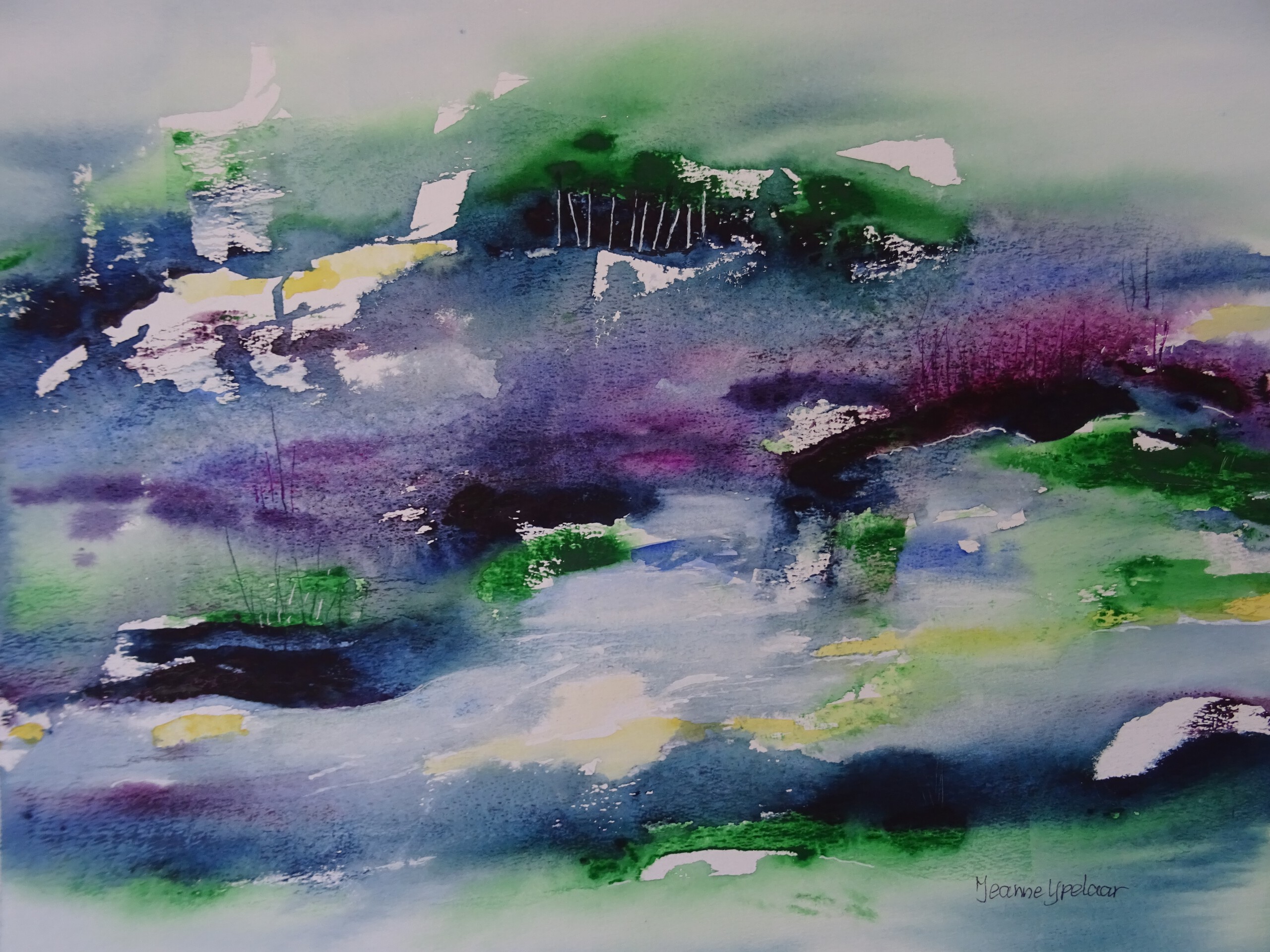 Mijn naam is Jeanne IJpelaar. Geboren in Loon op Zand. Als kind was ik altijd met potlood en verf in de weer. Jaren heb ik niets gedaan totdat ik weer in aanraking kwam met schilderen. Ik heb diverse workshops en cursussen gevolgd. Schilderen is voor mij kleur, verf, geur, nadenken en de tijd vergeten. Vaak staat er muziek op en dan lijkt het of ik in een eigen wereld vertoef waar ik heerlijk alles kan vergeten. Het liefst werk ik met aquarel en acryl verf met daarbij diverse materialen zoals zand, schelpen, papier, draad e.d. die ik dan verwerkt. Het is een uitdaging om met deze materialen een schilderij te maken waarvan ik kan zeggen dat het klopt. Schilderen is voor mij dan ook een uitlaatklep, even alles vergeten en bezig zijn met het maken van iets moois.