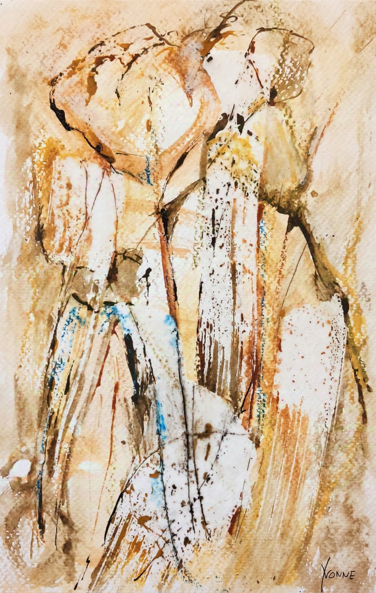 Na jaren schilderen met aquarelverf is Yvonne Siemelink na een aantal jaar overgestapt op werken met acrylverf. Een mooie boom, een detail uit een foto, of een tussendoor gemaakte krabbel kan aanleiding zijn tot een, meestal geabstraheerd, schilderij. Door haar werken in meerdere lagen op te bouwen bereikt zij een specifieke eigenheid in haar werk.