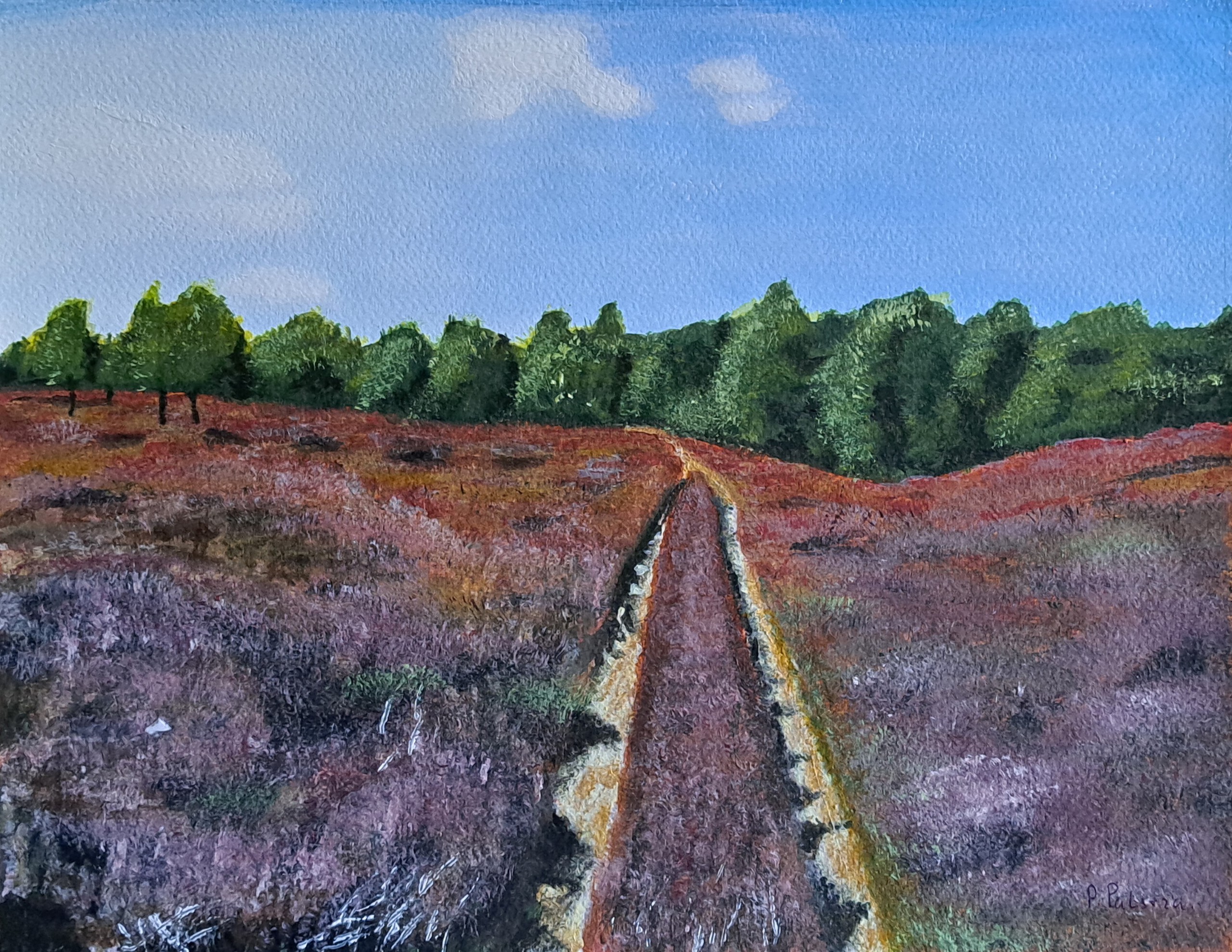Heidelandschap met karrespoor. Dit heidelandschap schilderde ik aan de hand van een kleurenfoto.