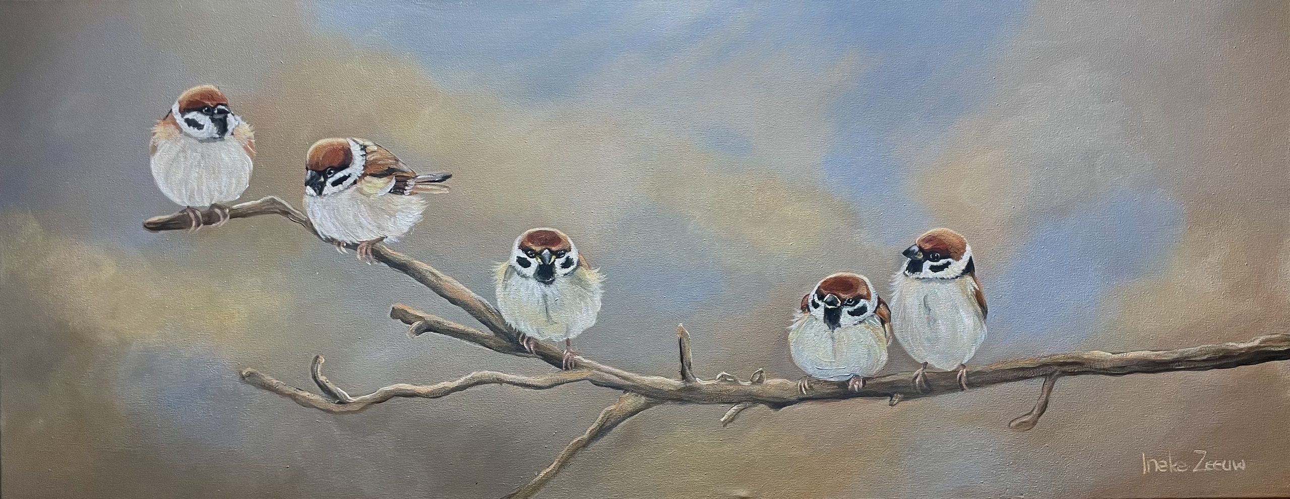 Licht Gouden Warm Mussen Uur Mus Landelijk Ringmus Musjes Vogelschilderij Mussenschilderij Ringmusjes