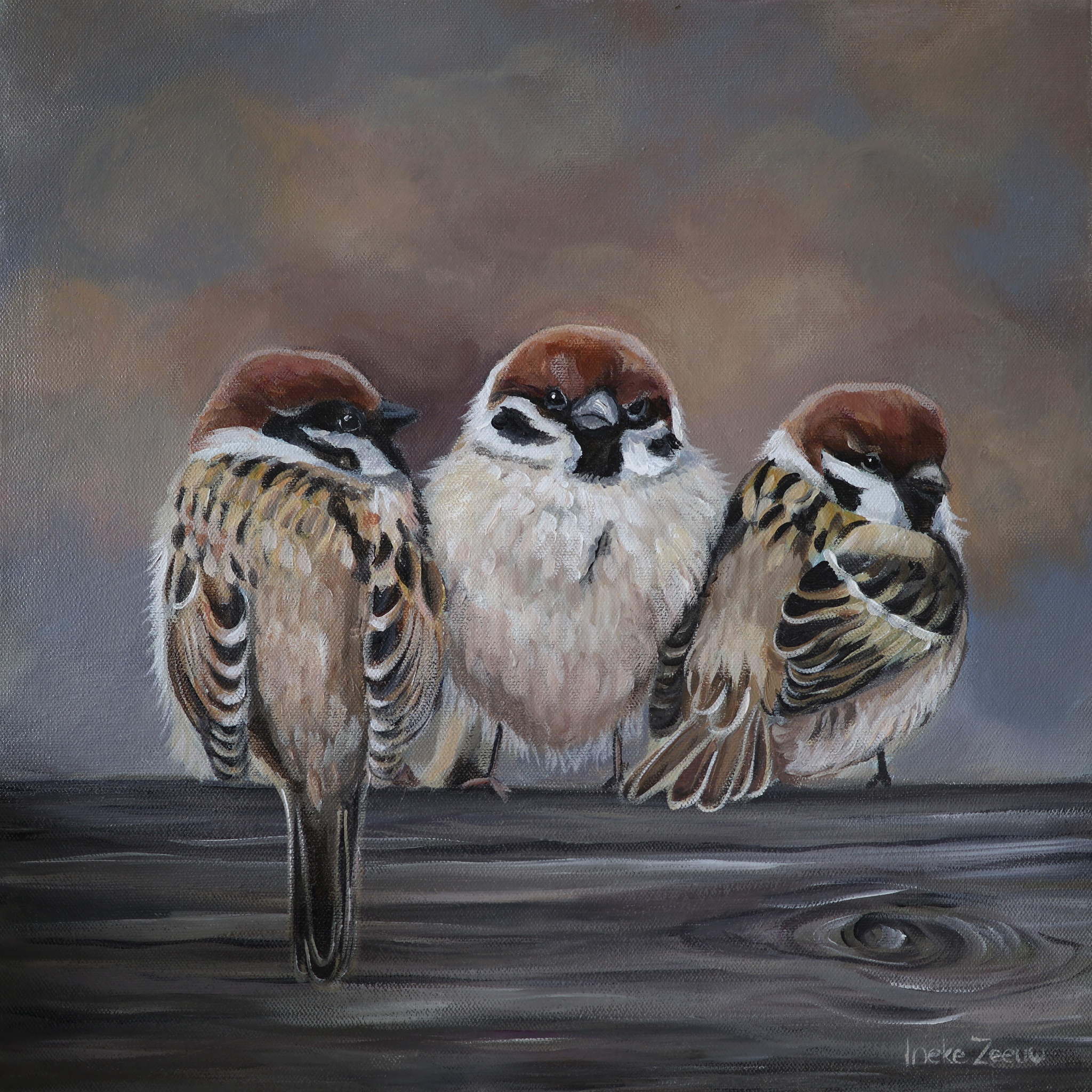 Schilderij drie musjes