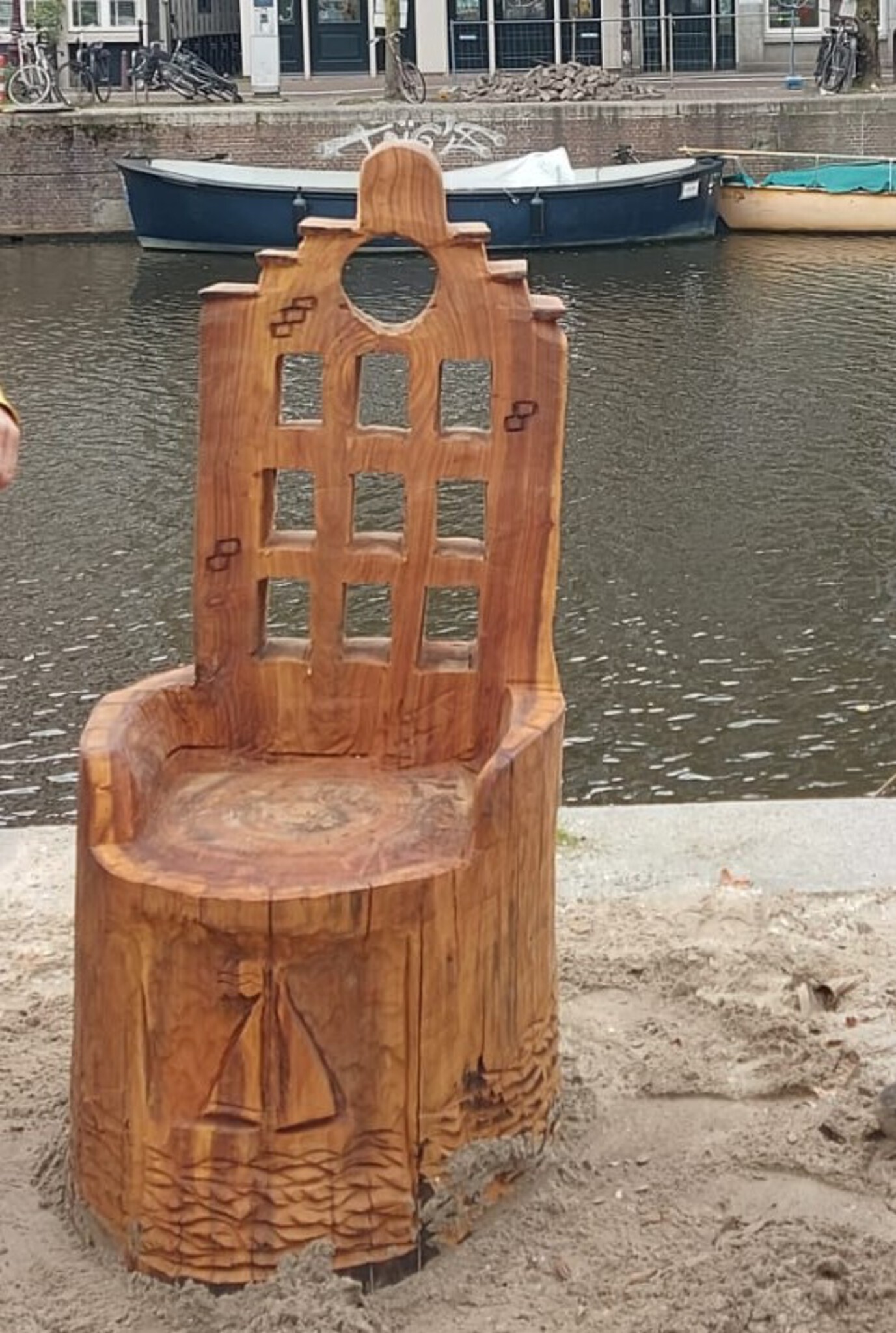 Houtsculpturen Grachtenstoel Amsterdam Woodcarving Hout Boomstam Houtenbeeld Kettingzaagkunst