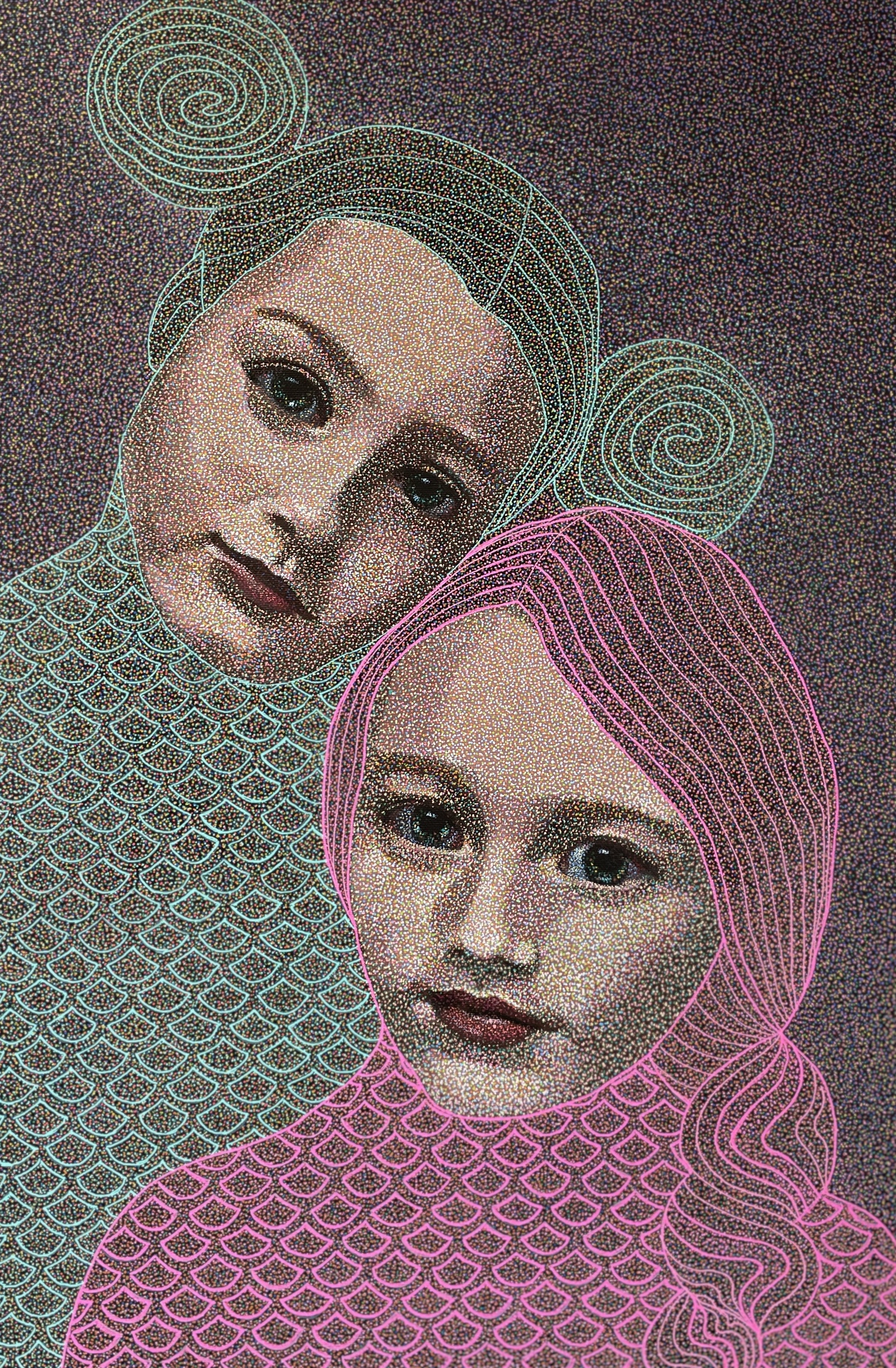 Meisje Meisjes Kind Kinderen Tweetal Portret Ogen Patroon Lijn Kinderportret Pointillisme Stippels