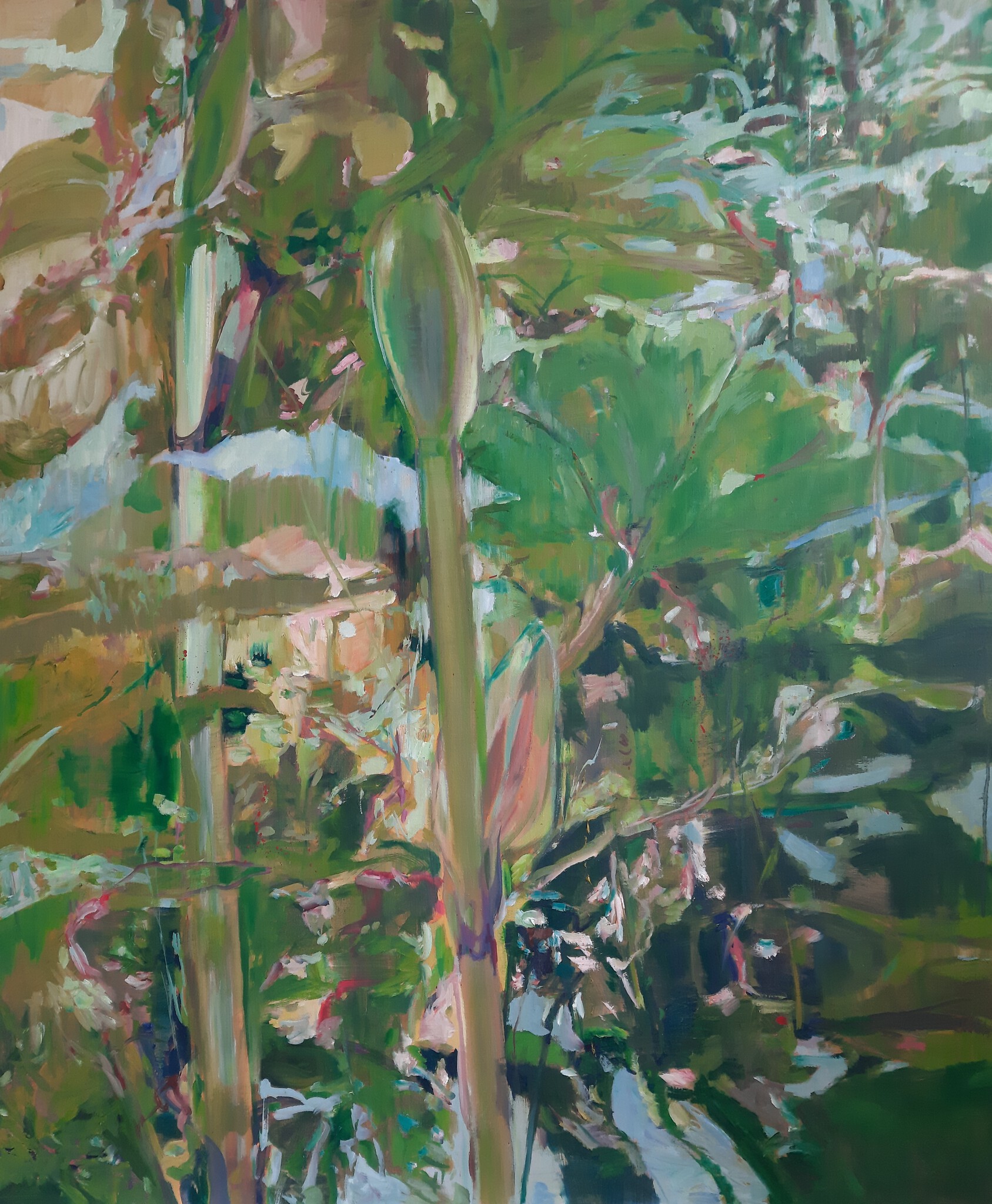 Schilderij Groen Wilde Canvas Olieverf Hedendaagse Kunst Natuur Bloem Moderne Blad Bos Plant Flora Vegetatie Groei Stengel