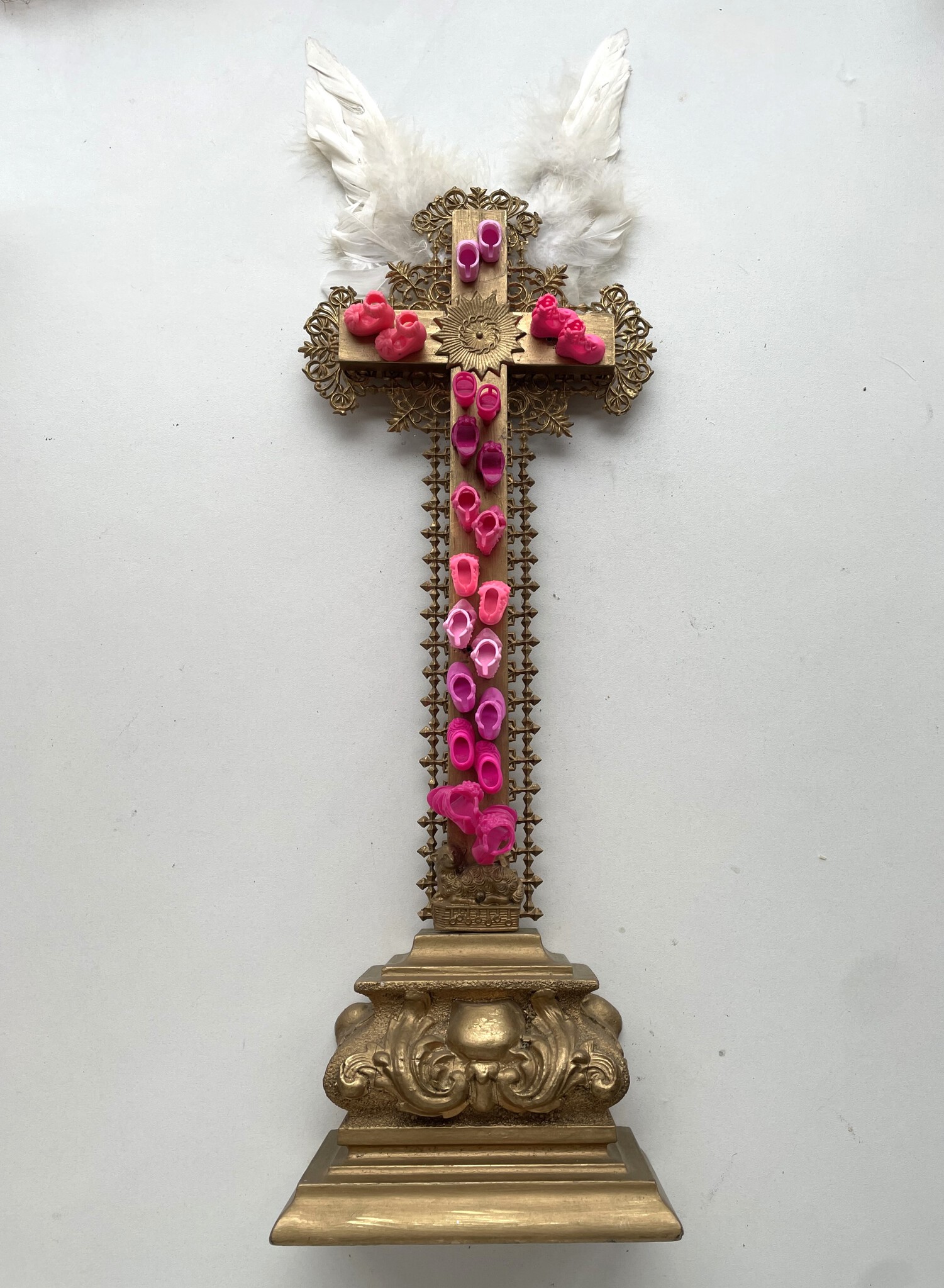 Kunstobject assemblage 'Voetsporen' Over identiteit, het in elkaars voetsporen treden.