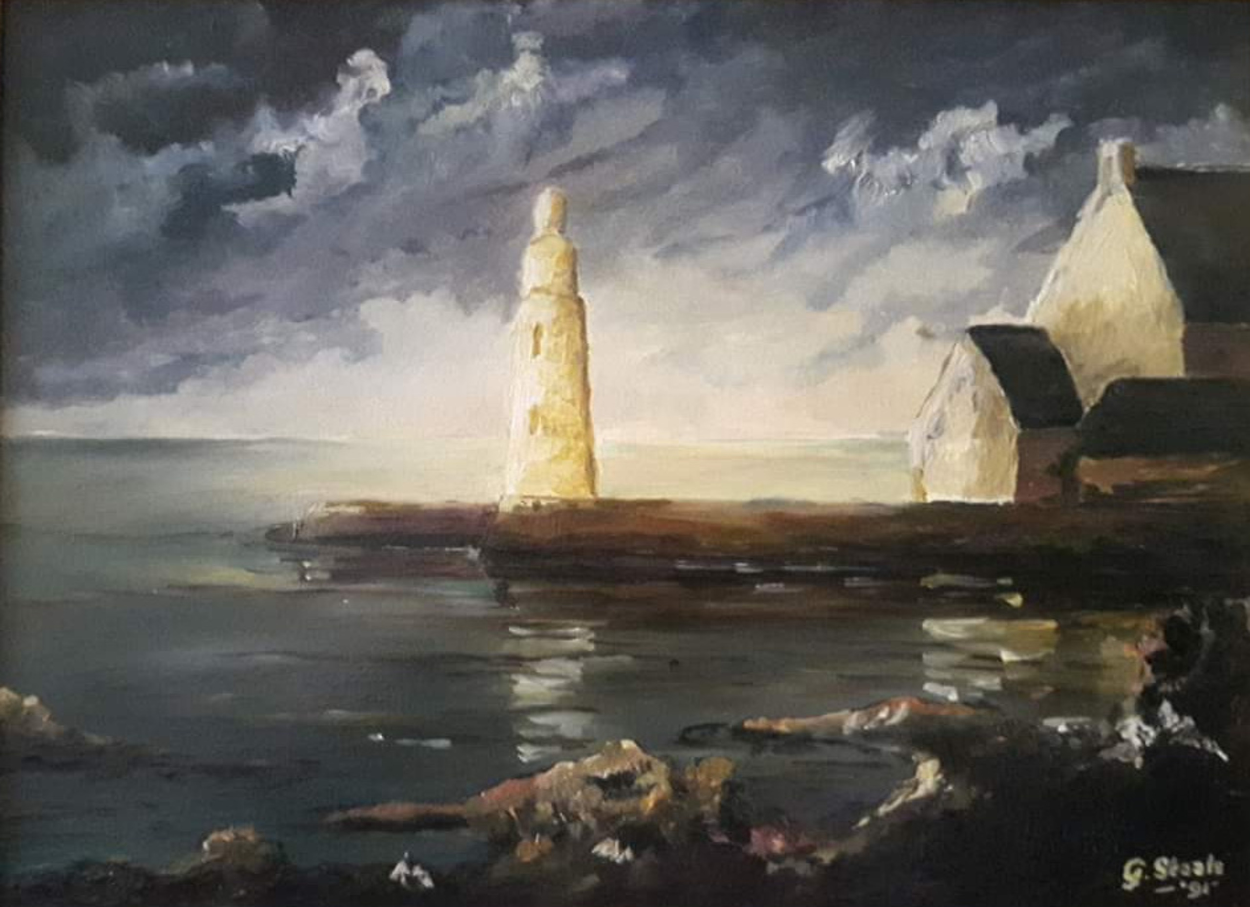 Dit schilderijtje heb ik na jaren teruggevonden bij de huidige eigenaar. Had ik al verkocht, maar er geen enkele afbeelding van. In de jaren '90 brachten we onze zomervakanties (met de kinderen) vaak door op het schiereiland Quiberon (Bretagne). Vlakbij lag het vuurtorentje van Port Haliguen. Ik maakte schetsen ter plekke en schilderde het op doek na thuiskomst.