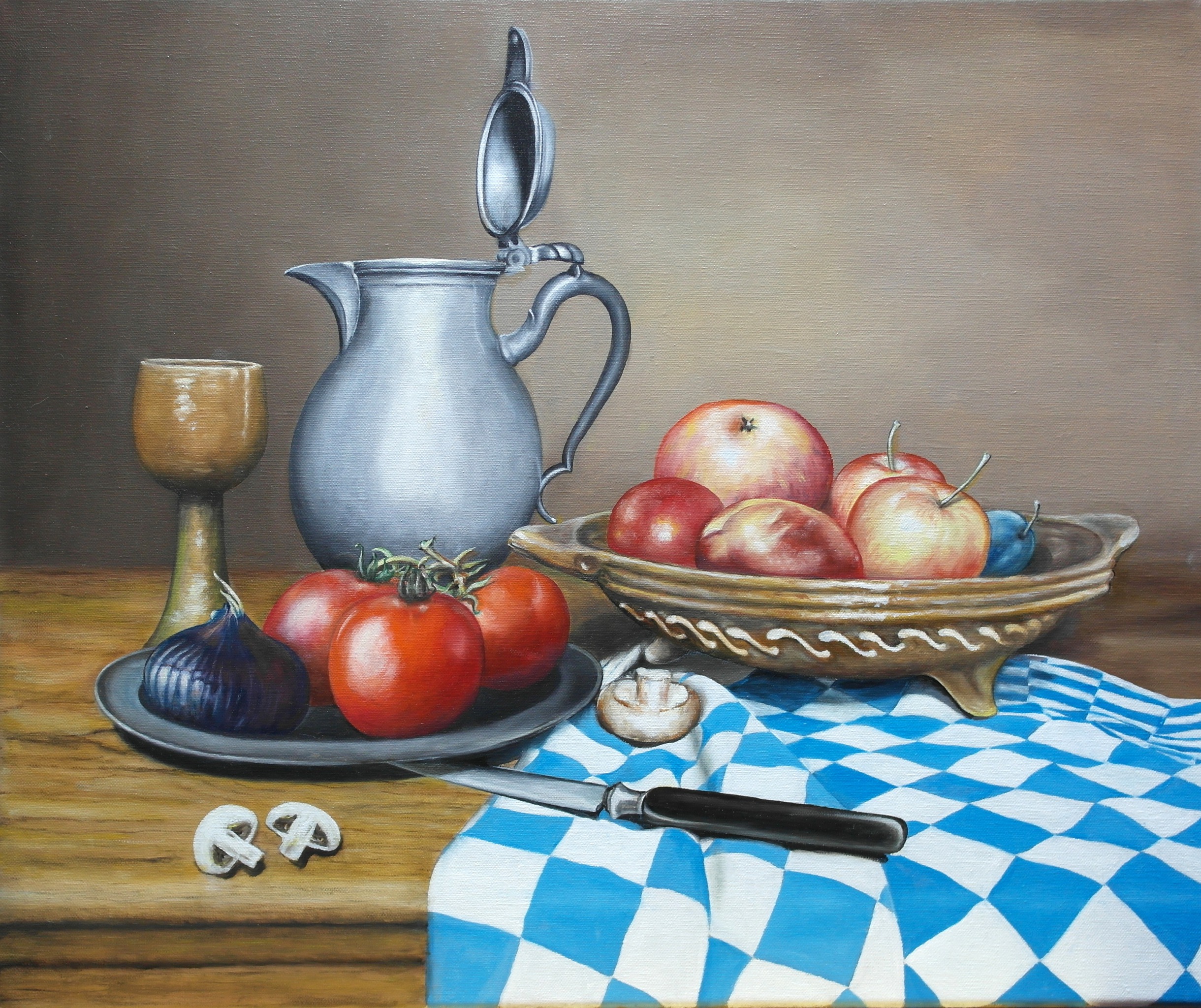Stilleven met tinnen snavelkan