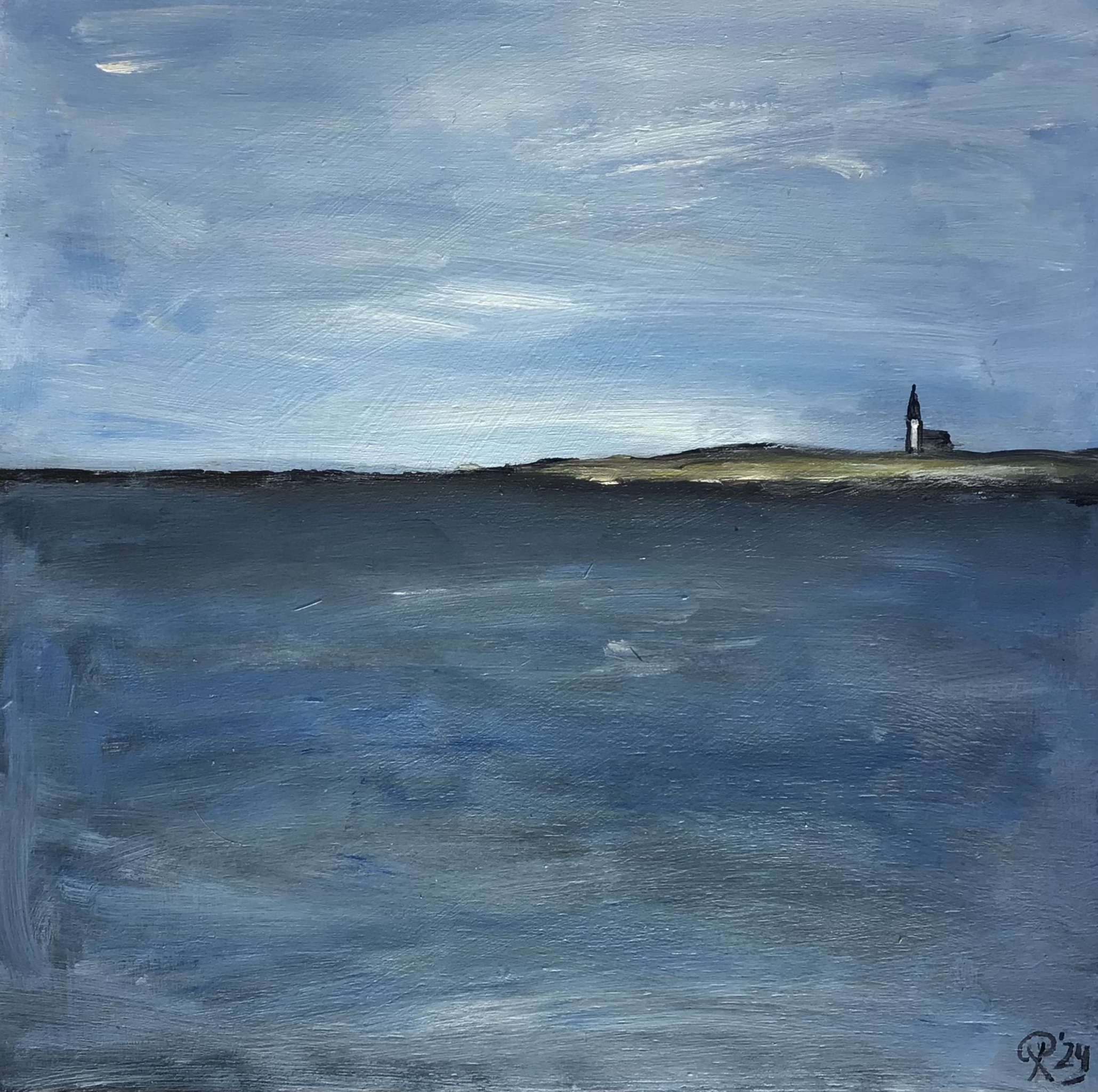 Texelse fragmenten waarbij de eenvoud het verhaal vertelt. De skyline van Texel... het eerste wat je ziet. Een beeld dat je terugwerpt op jezelf. 52 x 52 cm, incl. witte 10 cm brede lijst. VERKOCHT.