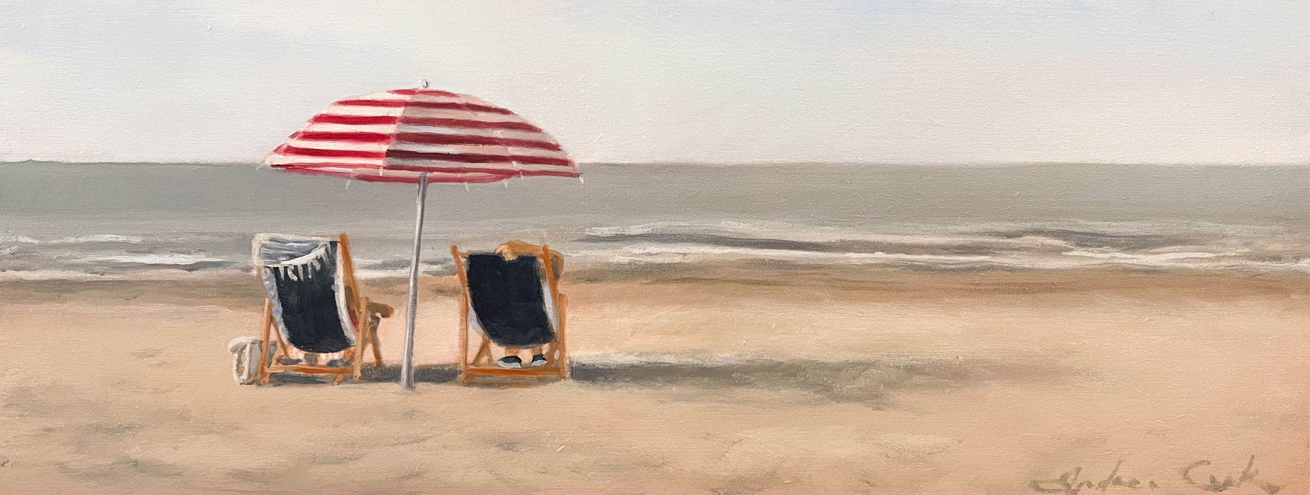 Zeetafereel met strandstoelen en parasol