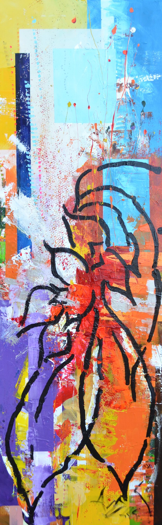 De meeste creaties van Tom zijn geen kant en klare fotogelijkende schilderijen maar met zijn abstract ogende werken nodigt hij iedereen uit om zelf herkenbare beelden te ontdekken.