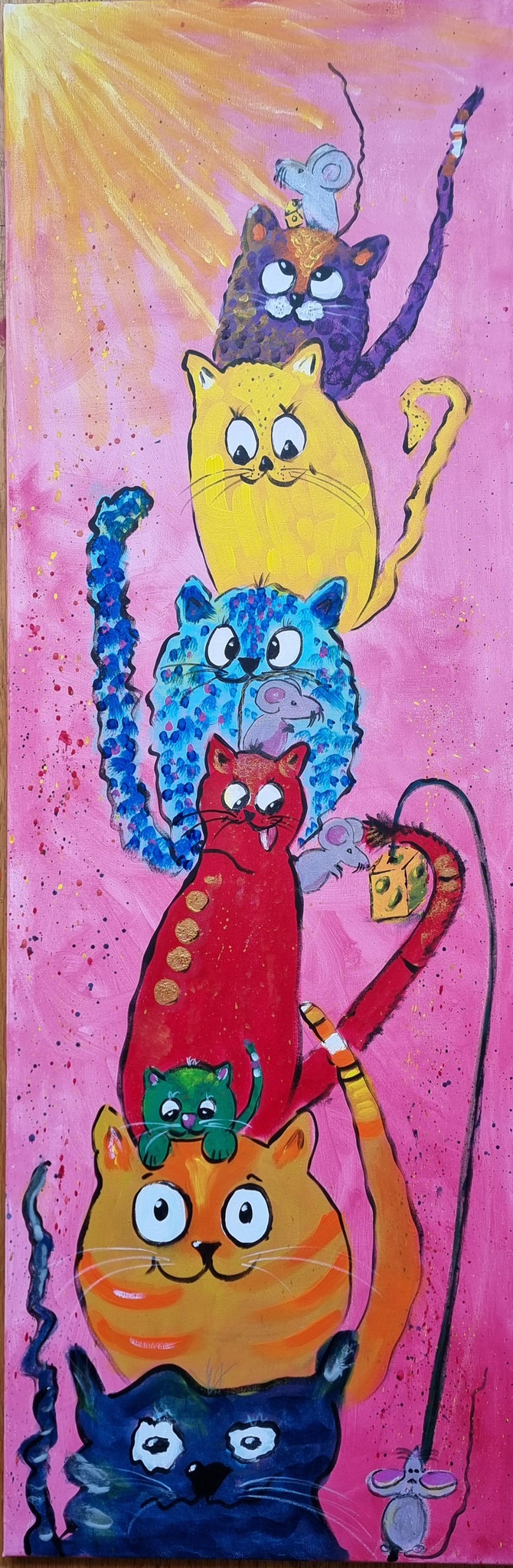 Sinds augustus 2020 ben ik, Nicole, gaan schilderen dus dat is nog vrij kort. Nog nóóit een kwast vastgehouden. Ik hou van kleur en van lachen, dat probeer ik in al mijn schilderijen weer te geven.