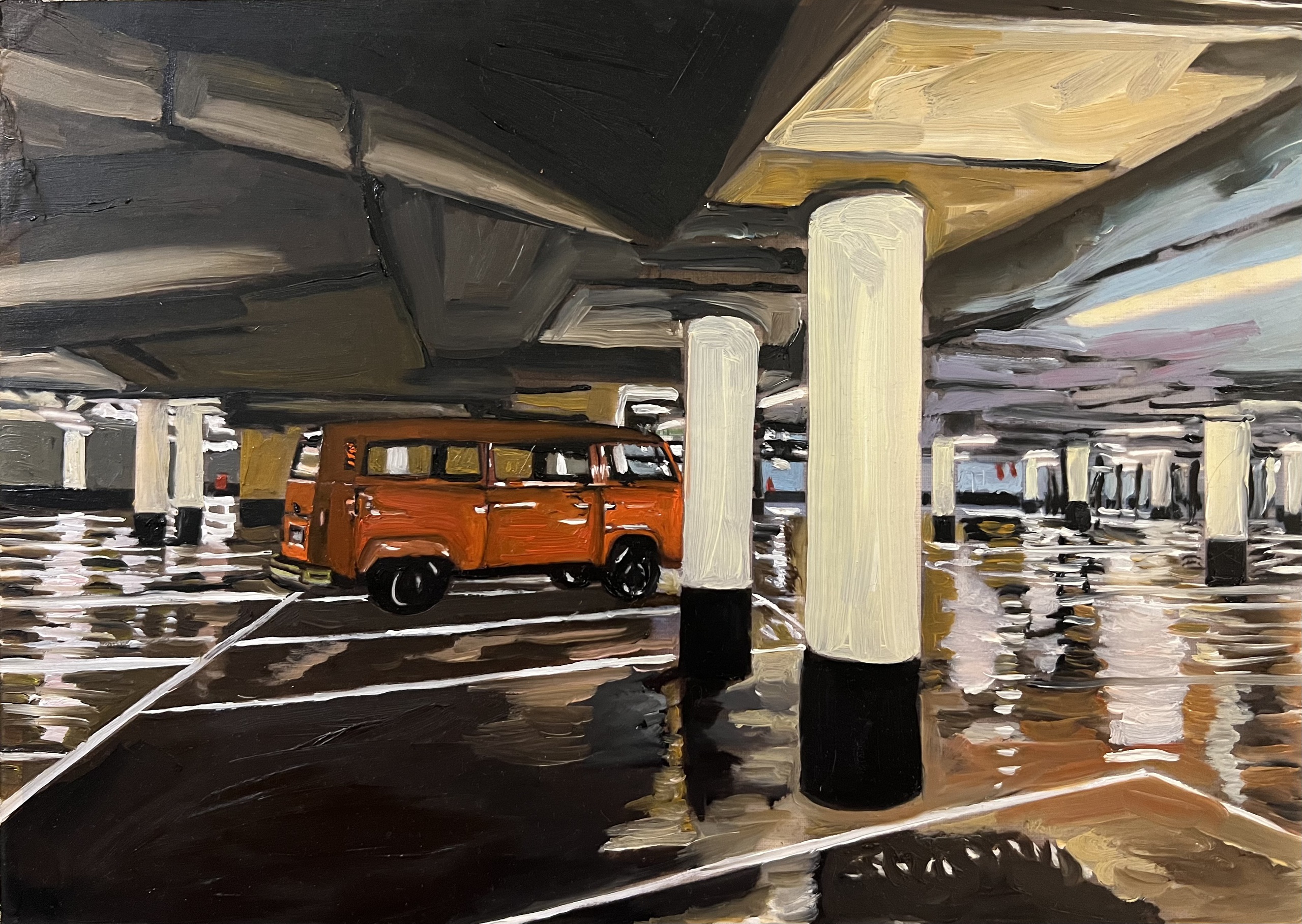 Schilderij Olie Vloer Garage Spiegelingen Parkeren