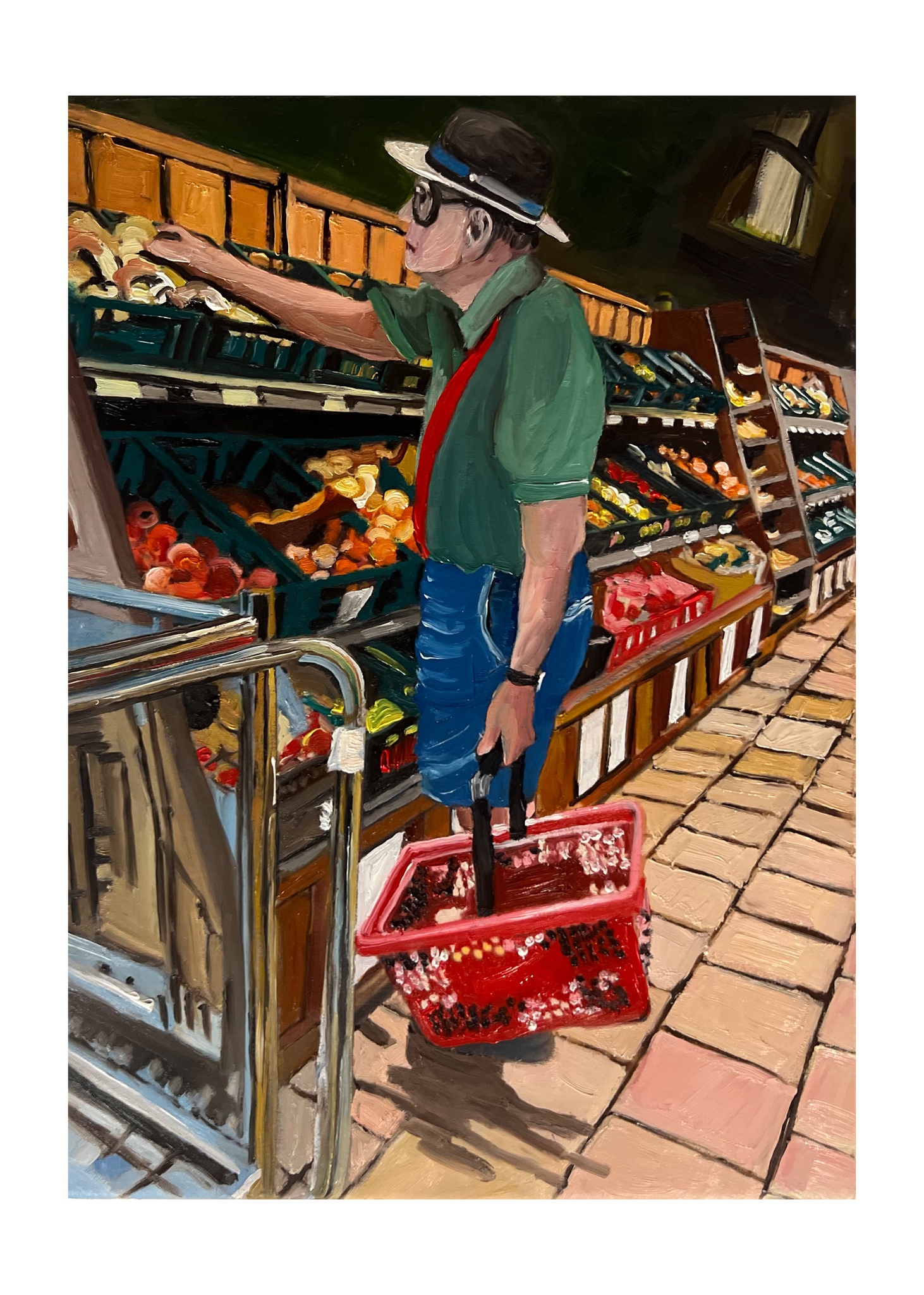 Schilderij Man Arm Mandje Boodschappen Supermarkt