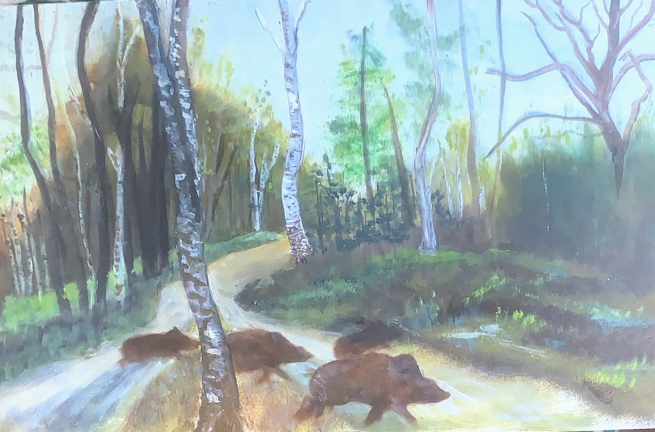 Op de Lange Jueer overstekende wilde zwijnen