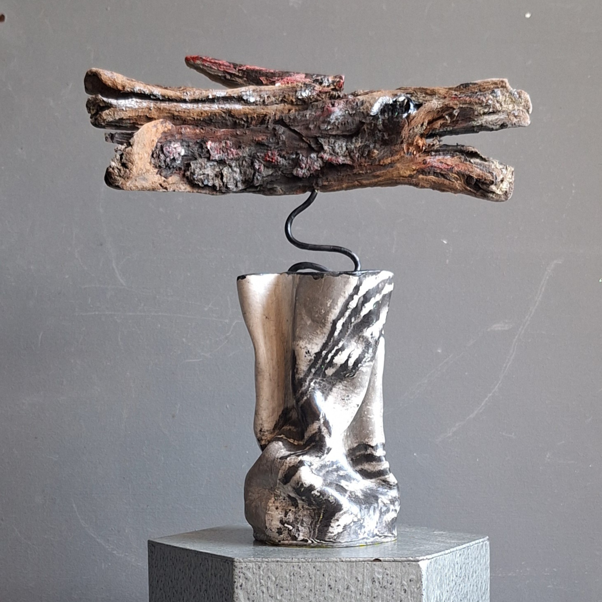 Kreukelvaasje Met Driftwood Flower Luchtdrogende Klei