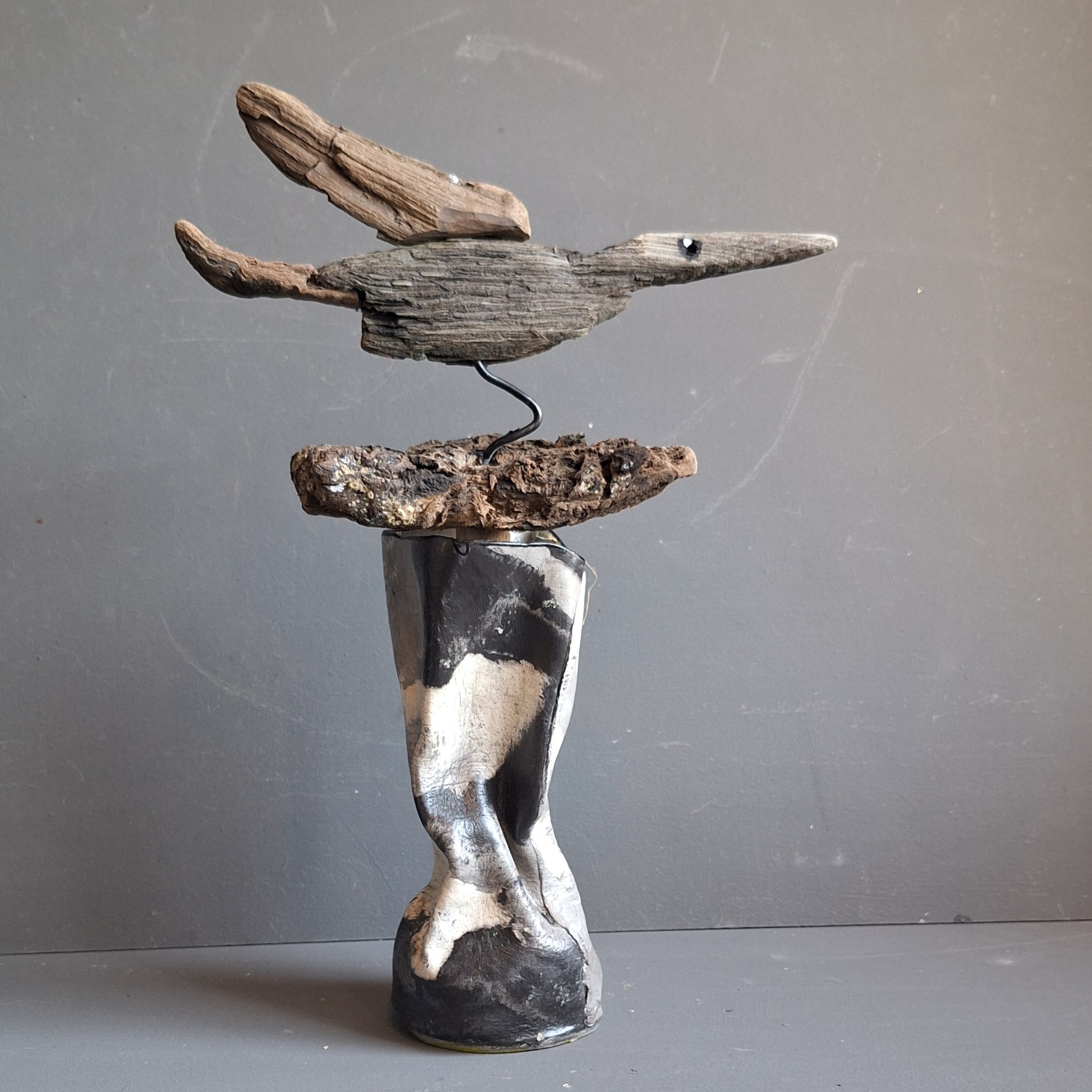 Kreukelvaasje met driftwood flower luchtdrogende klei.K31