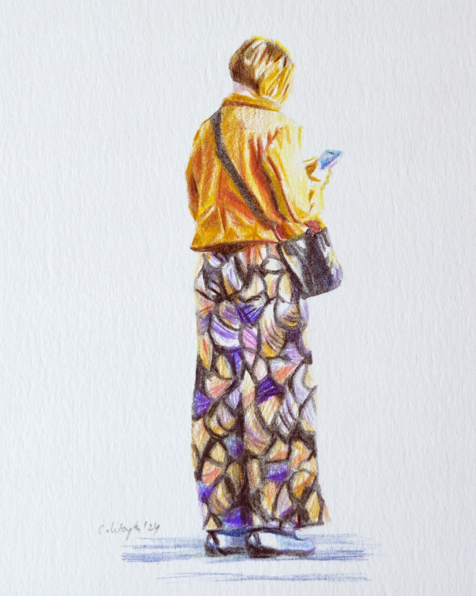 Vrouw Dame Smartphone Telefoon Tekening Kleurpotlood Weyts Kleur Broek