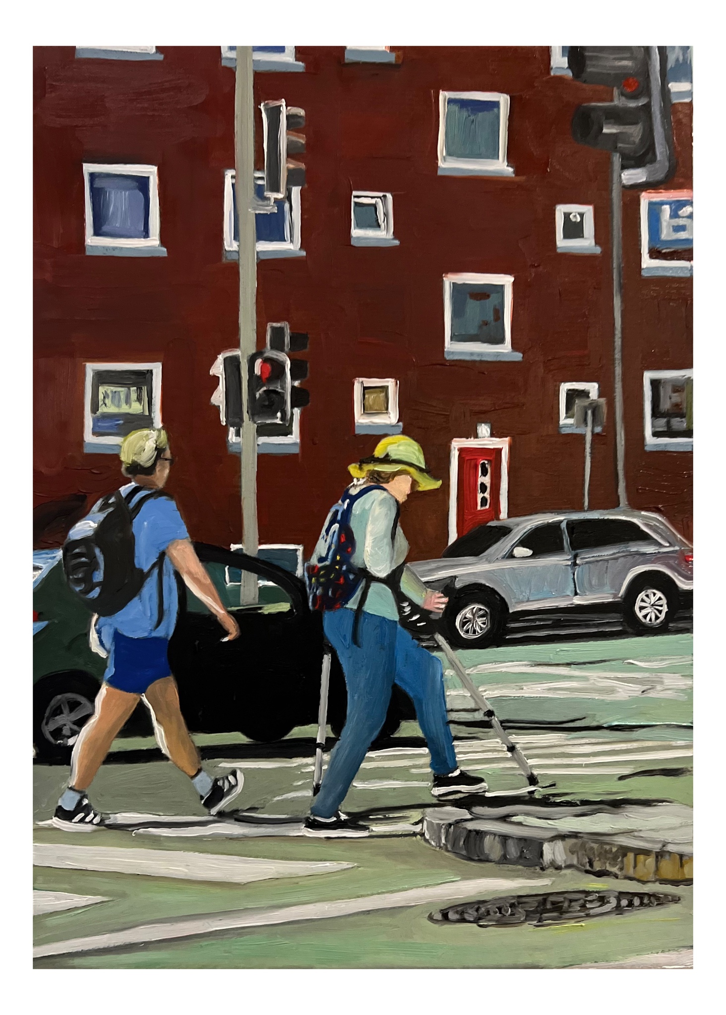 Schilderij Mensen Stadsgezicht Wandelen Zebrapad Wandelstok
