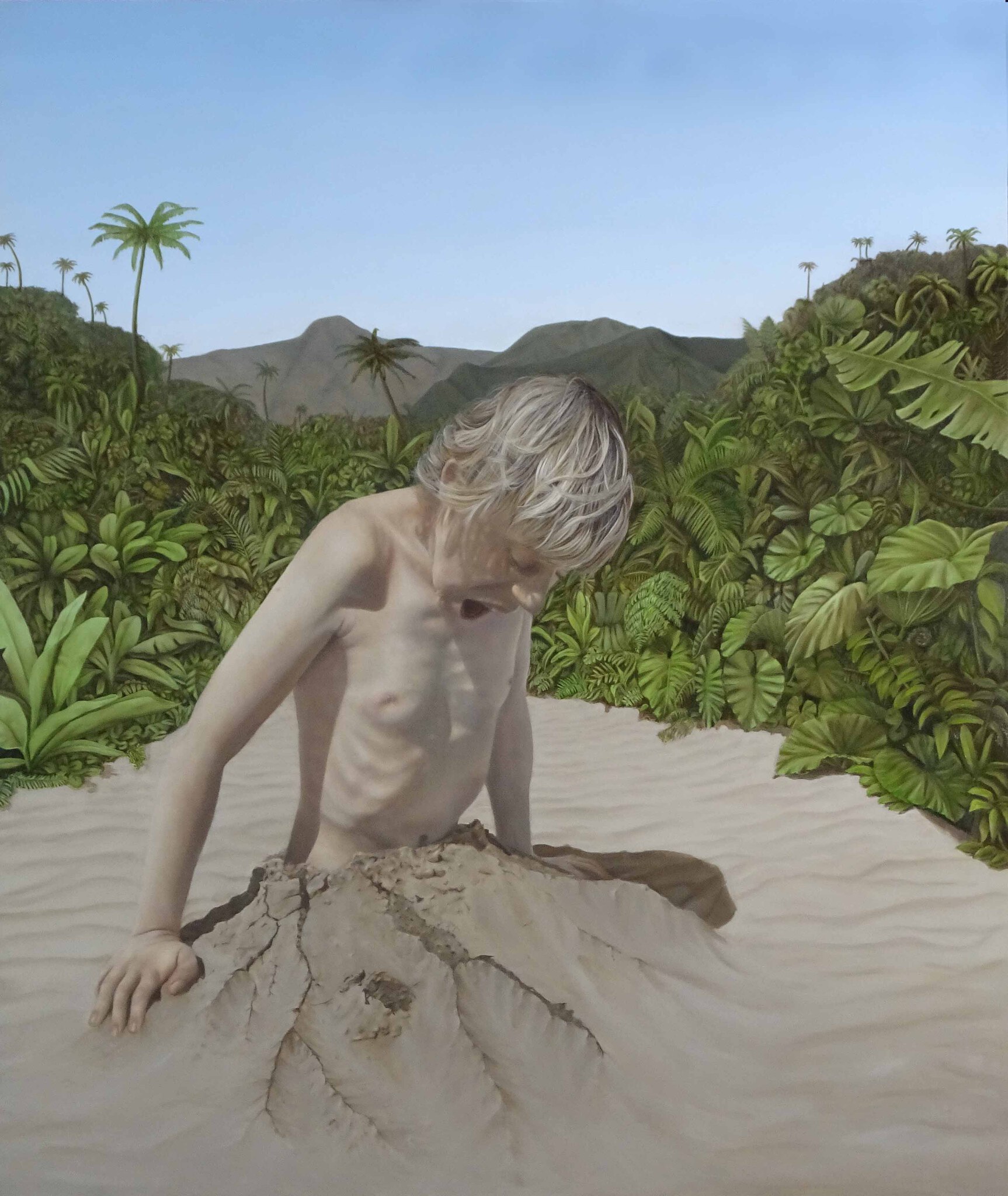 De mens (Adam) wordt uit het zand geboren in een paradijselike omgeving. De omgeving is stil, het waait niet, er zijn geen vogels of andere dieren of ze kijken stilletjes vanuit de struiken toe. Een stilte voor de storm? Is de aanweziheid van de mens goed of blijkt dat juist een gevaar voor deze aarde?