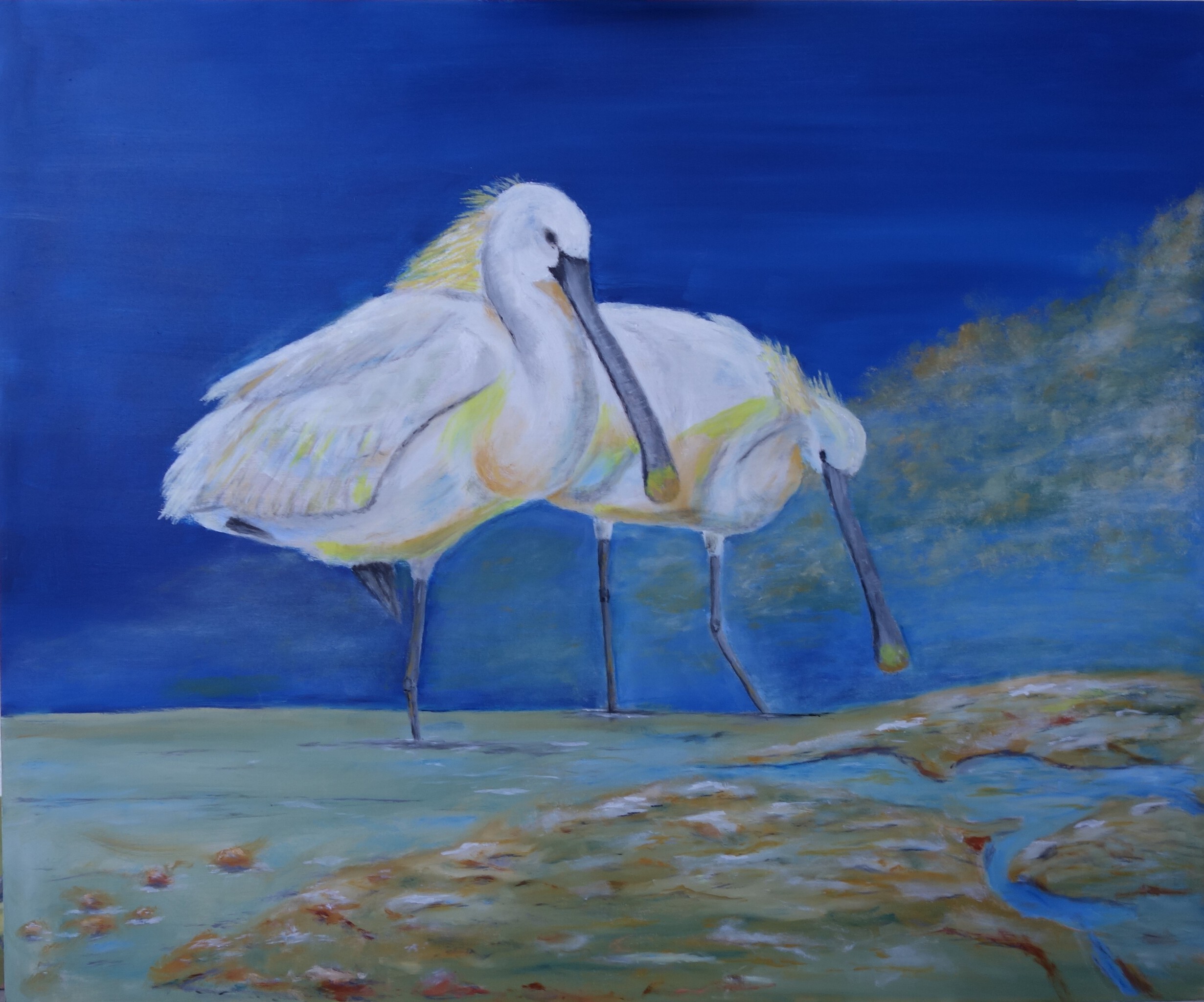 Olieverf schilderij van twee lepelaars