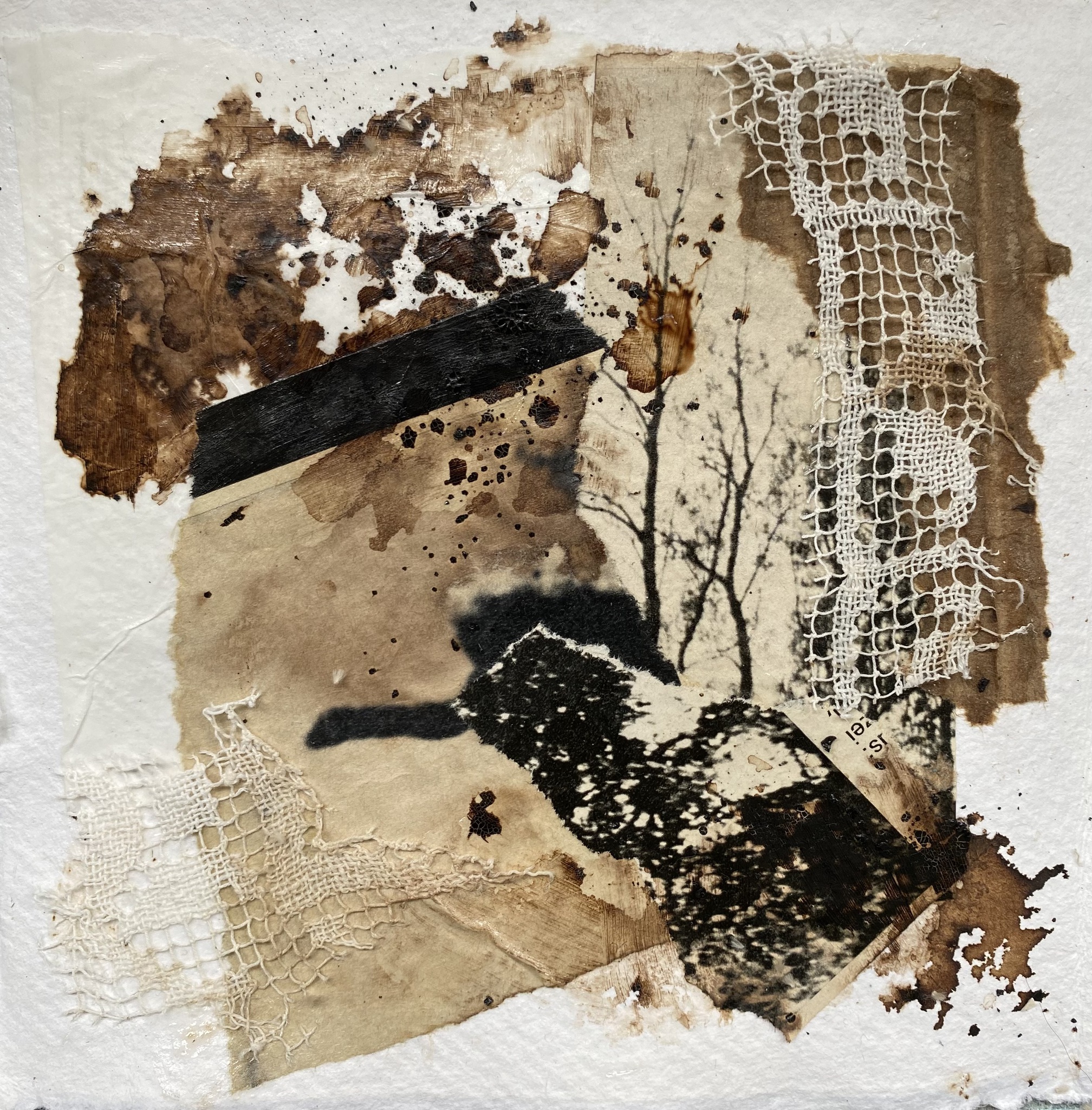 Collage op handmade cotton met Notenbolster Bister-natuur