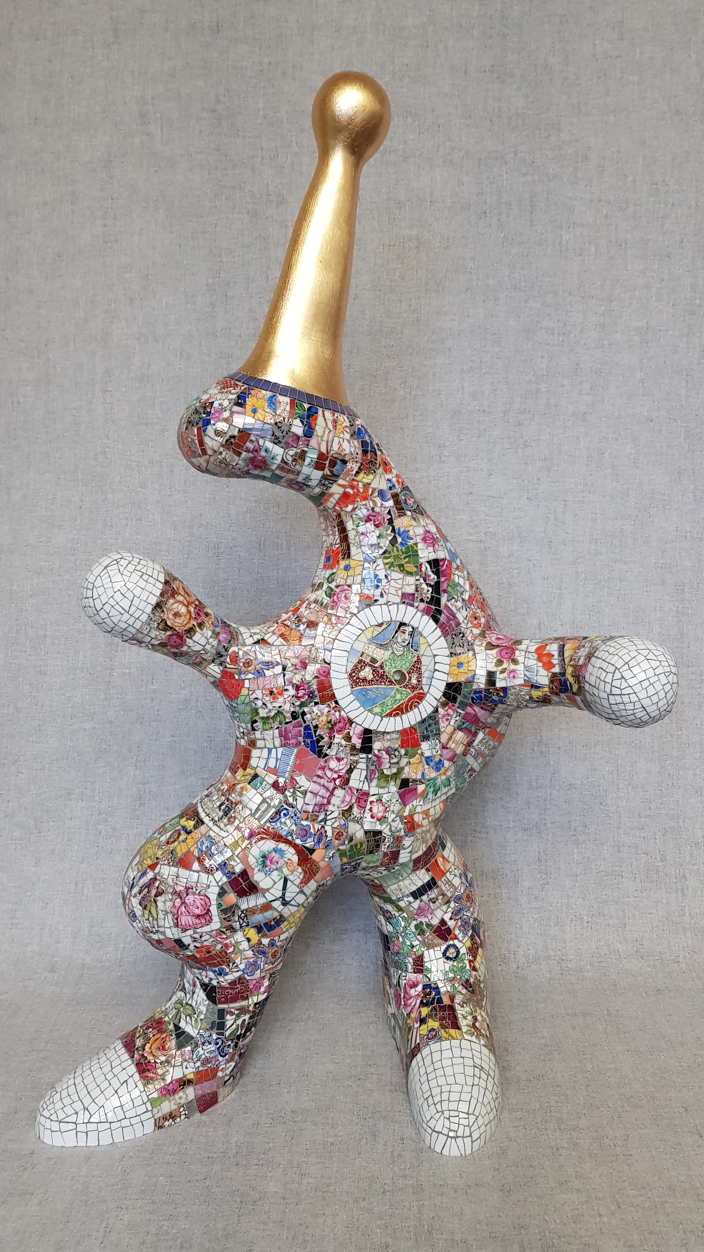Porselein sculptuur met divers en wit porselein in combinatie met " bladgoud " UNICA en volledig met de hand gemaakt. Ingevoegd en opgepoetst. Incl. de 3 oortjes en initialen WA. Deze is NIET te koop.