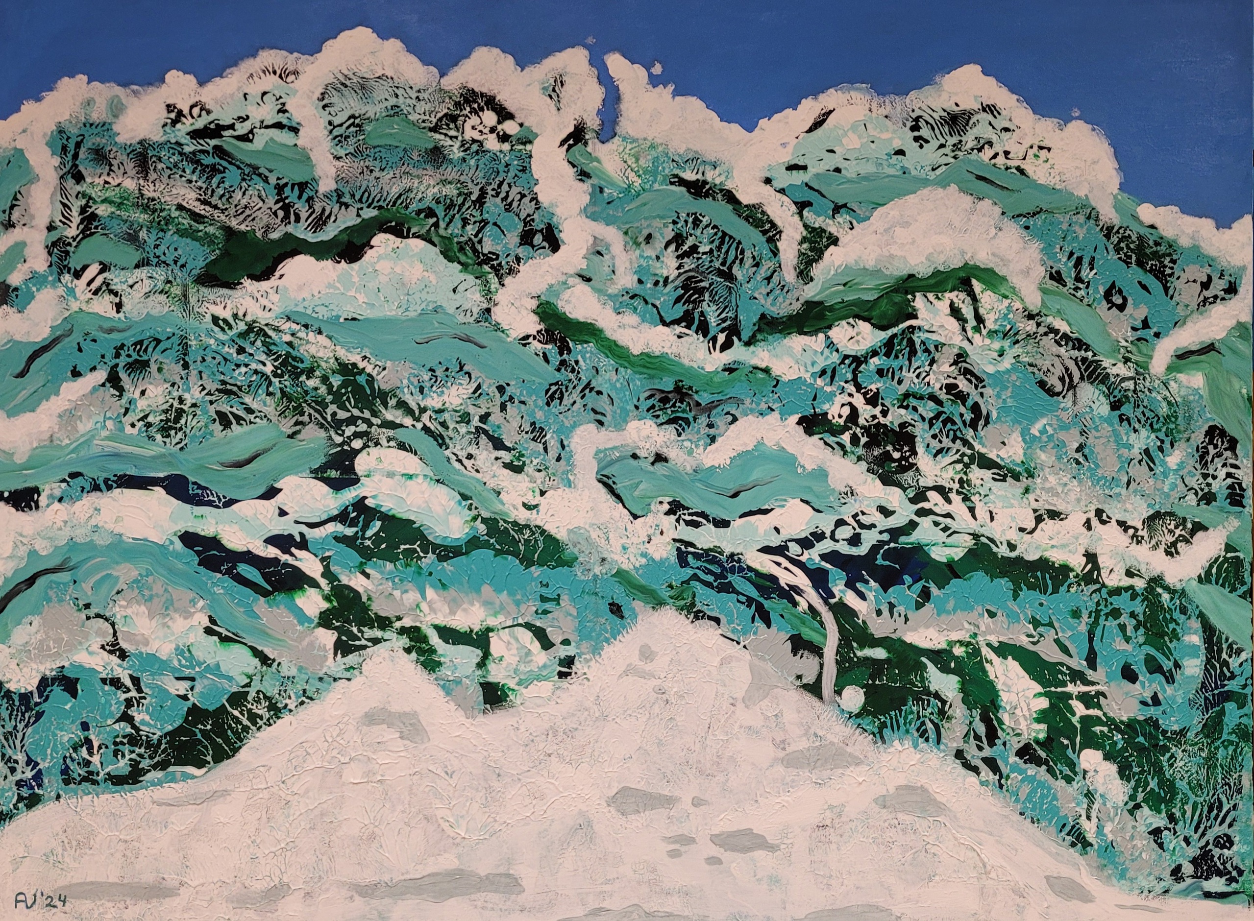 Branding van de zee. Gemaakt met speciale druktechniek met acrylverf.