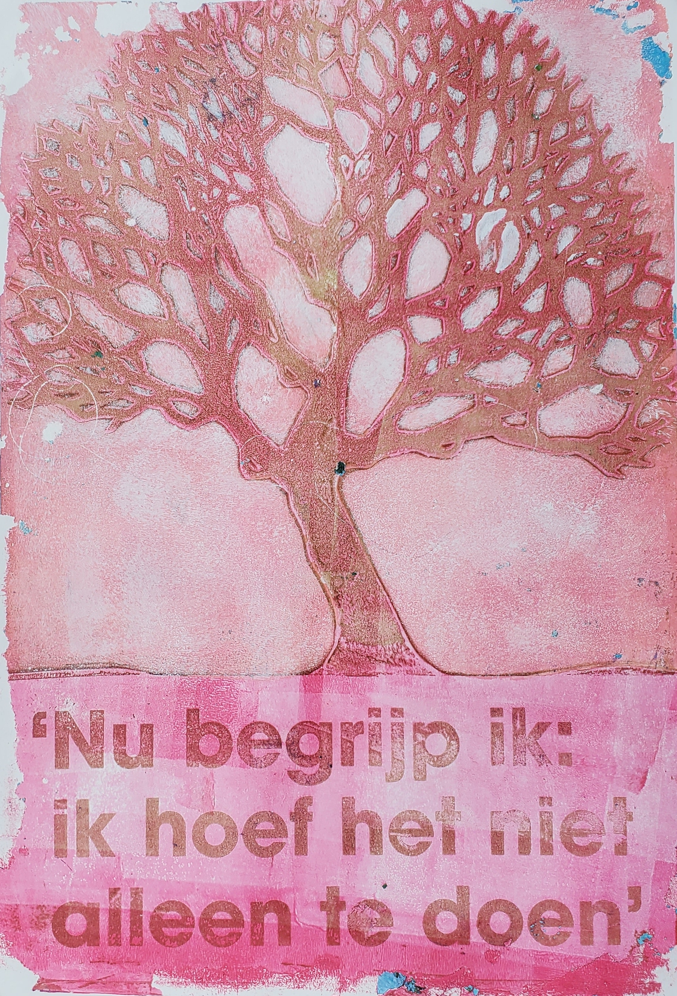 Roze Boom Alleen Tekst Gelliplate Gelprint
