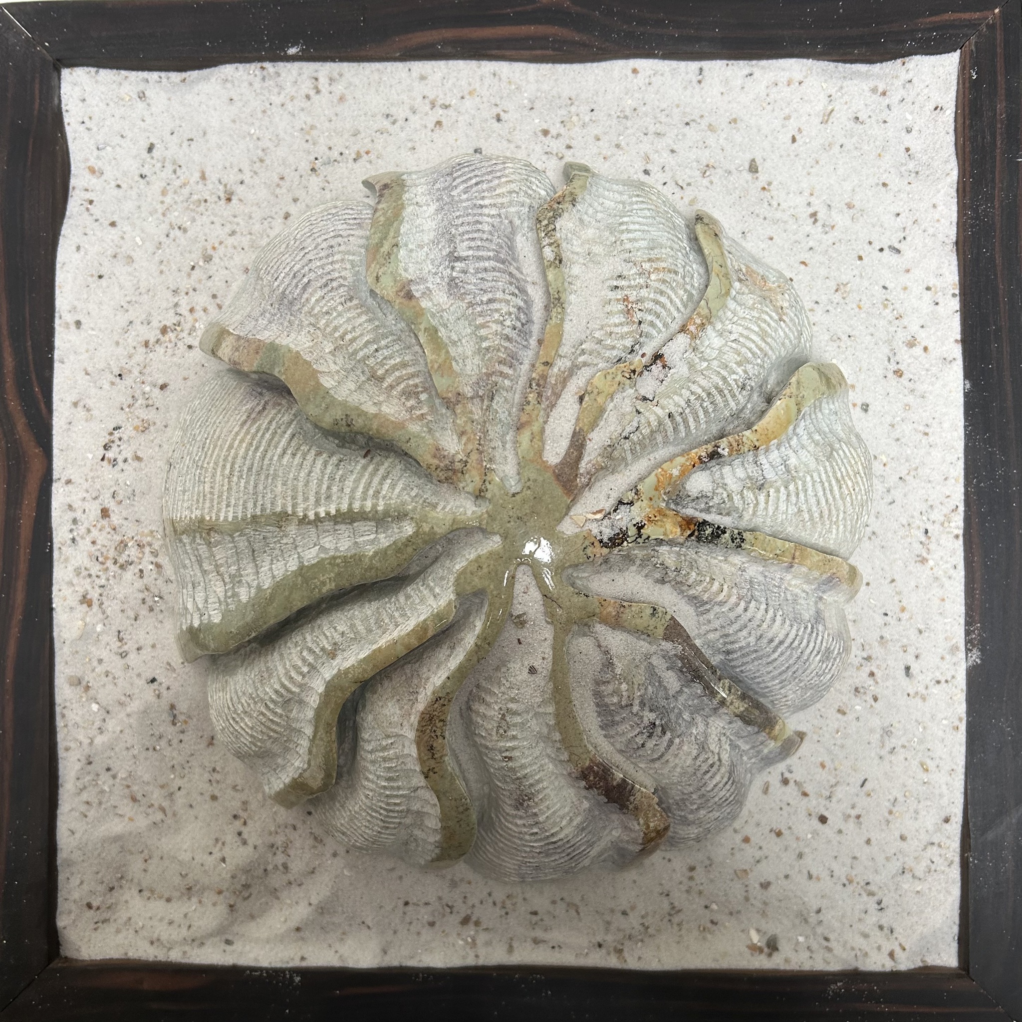 De ronde vorm en diepe organische groeven doen denken aan een zee-egel of koraal. Het beeld uit serpentijn is geinspireerd door vormen in de zee. Het komt bijvoorbeeld goed tot zijn recht in een bak met zand, waardoor het als het ware oprijst uit de zeebodem.