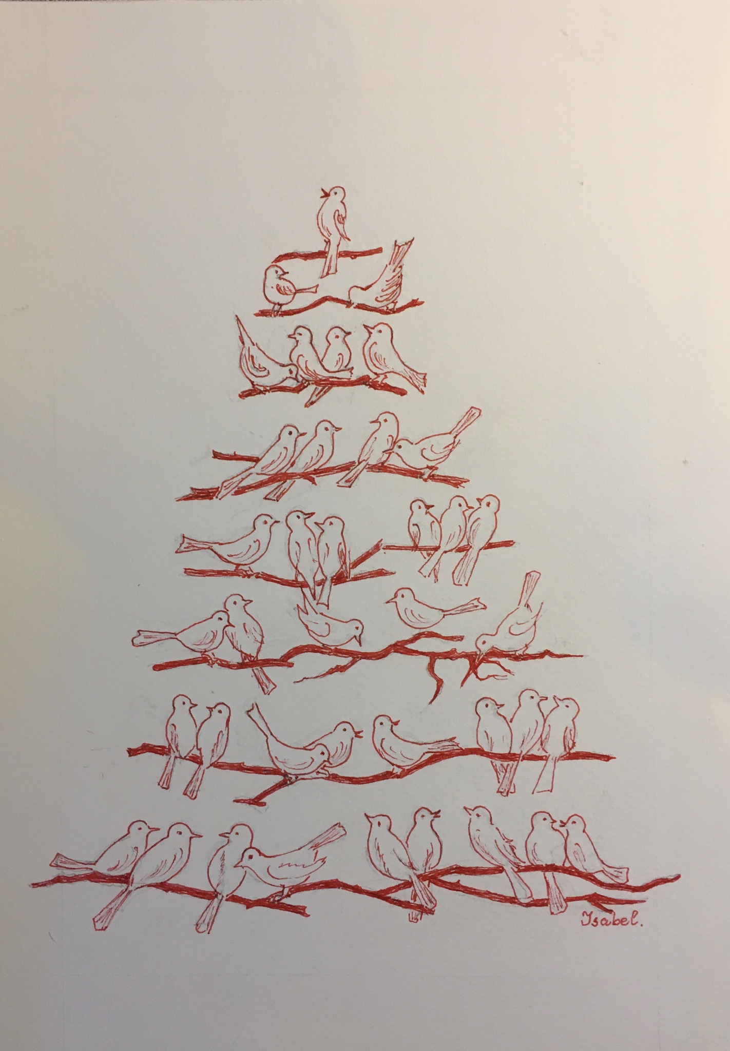 Veel zingende vogels in kerstformatie