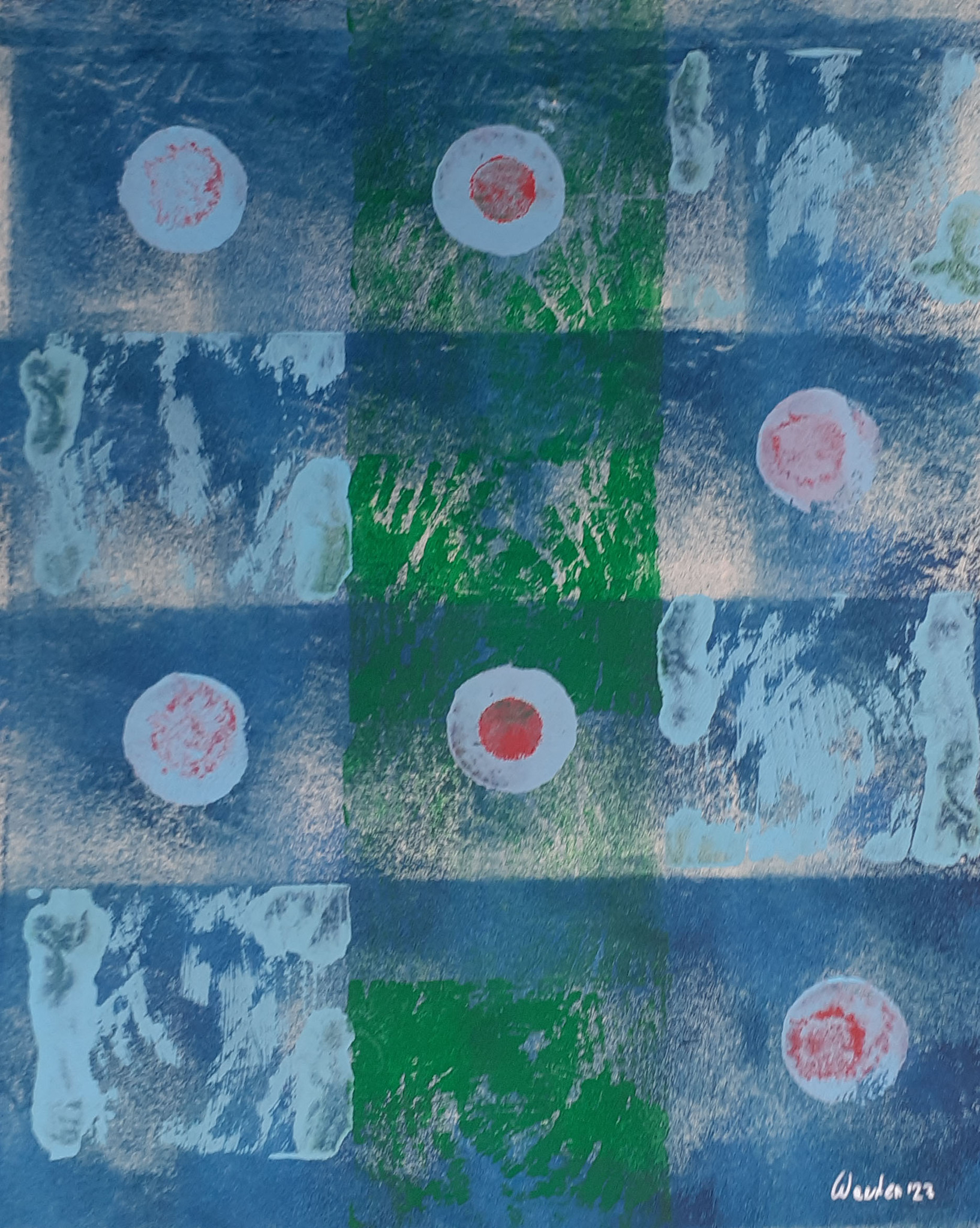 Een mix van technieken en stijlen , van wild abstract, naar figuratief naar strak bijna grafisch.