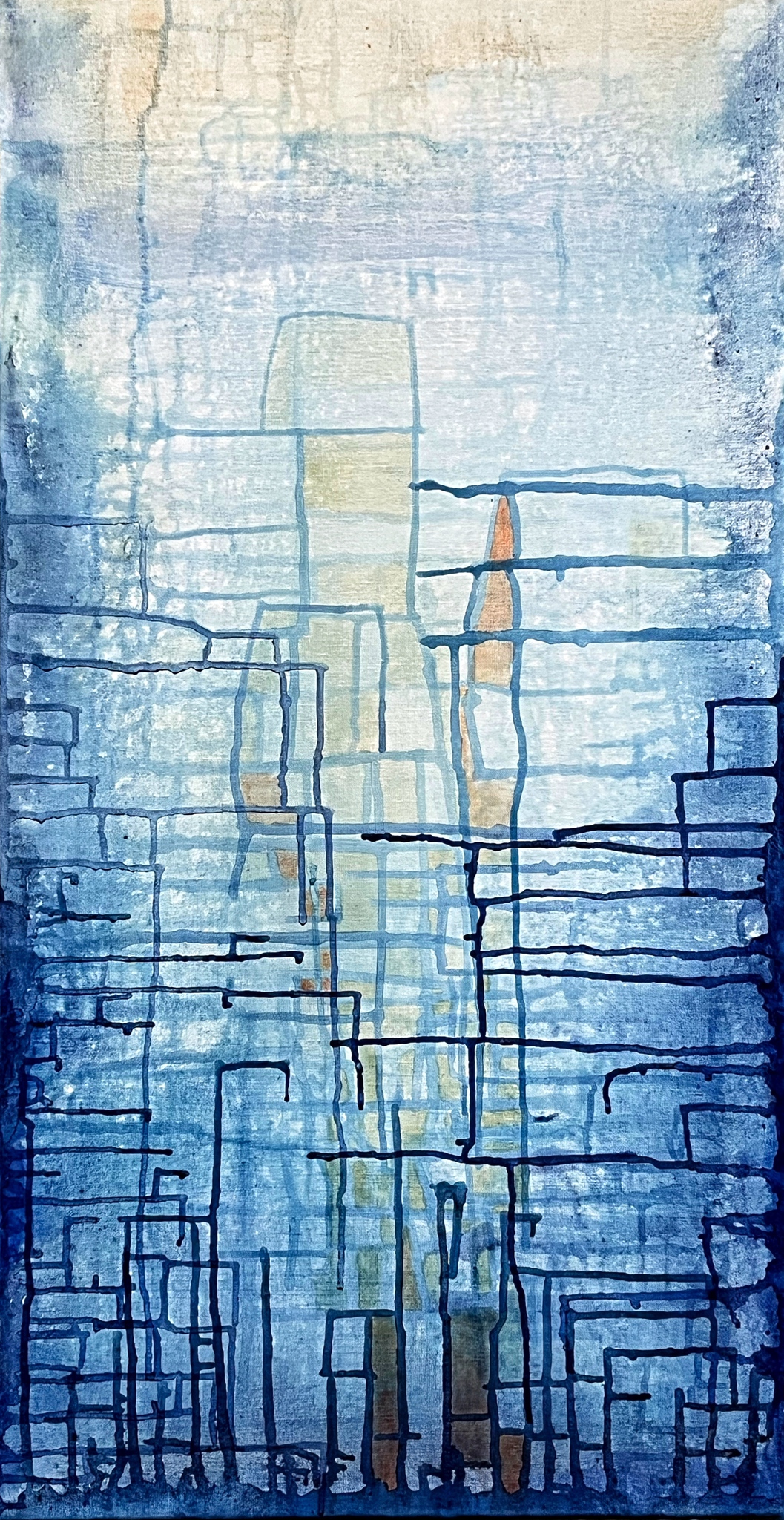Schilderijen als wandelingen in een fictief landschap: natuurelementen die op elkaar inspelen, al dan niet met menselijke ingrepen.