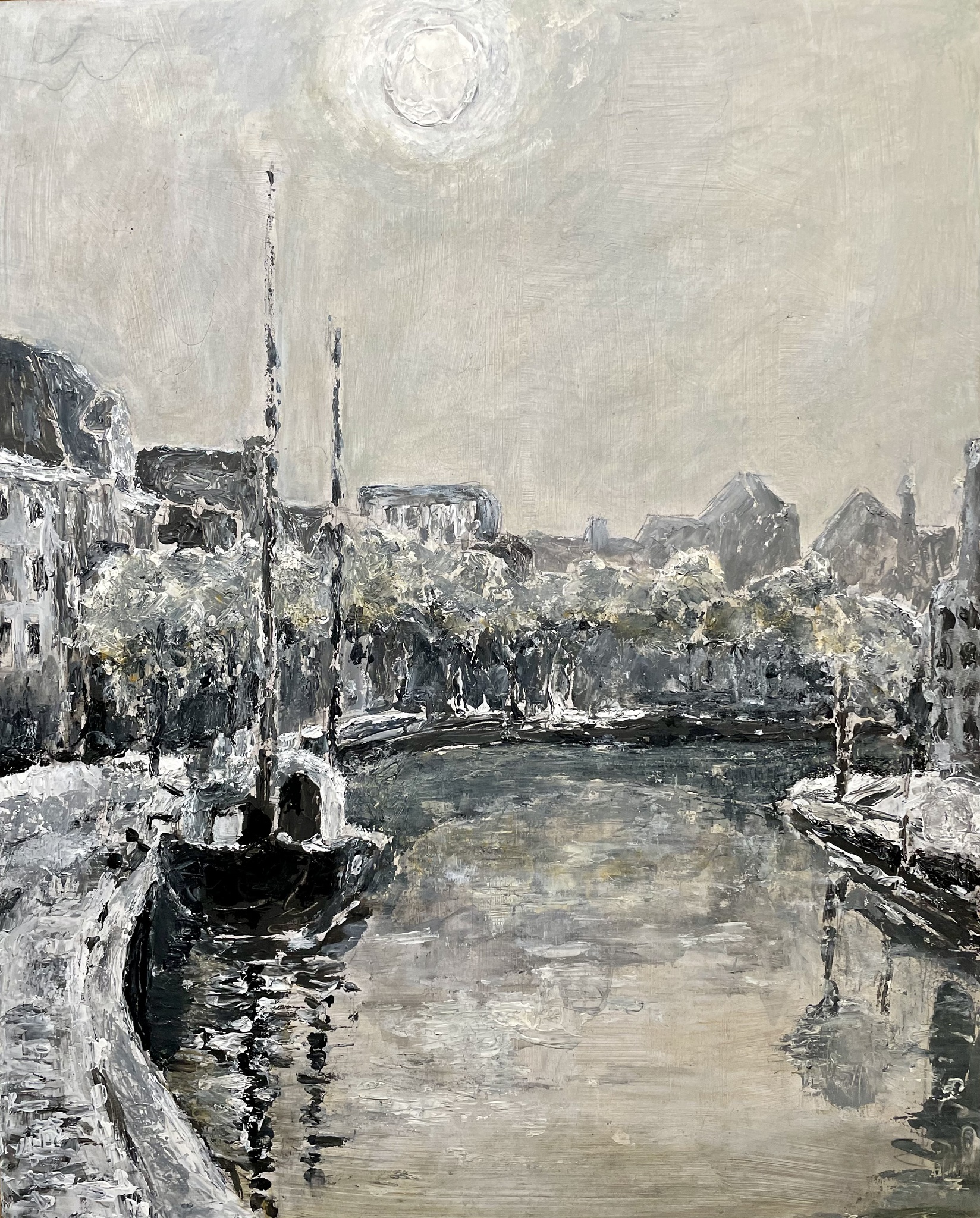 Water Acrylverf Paletmes Grijstinten Bootjes