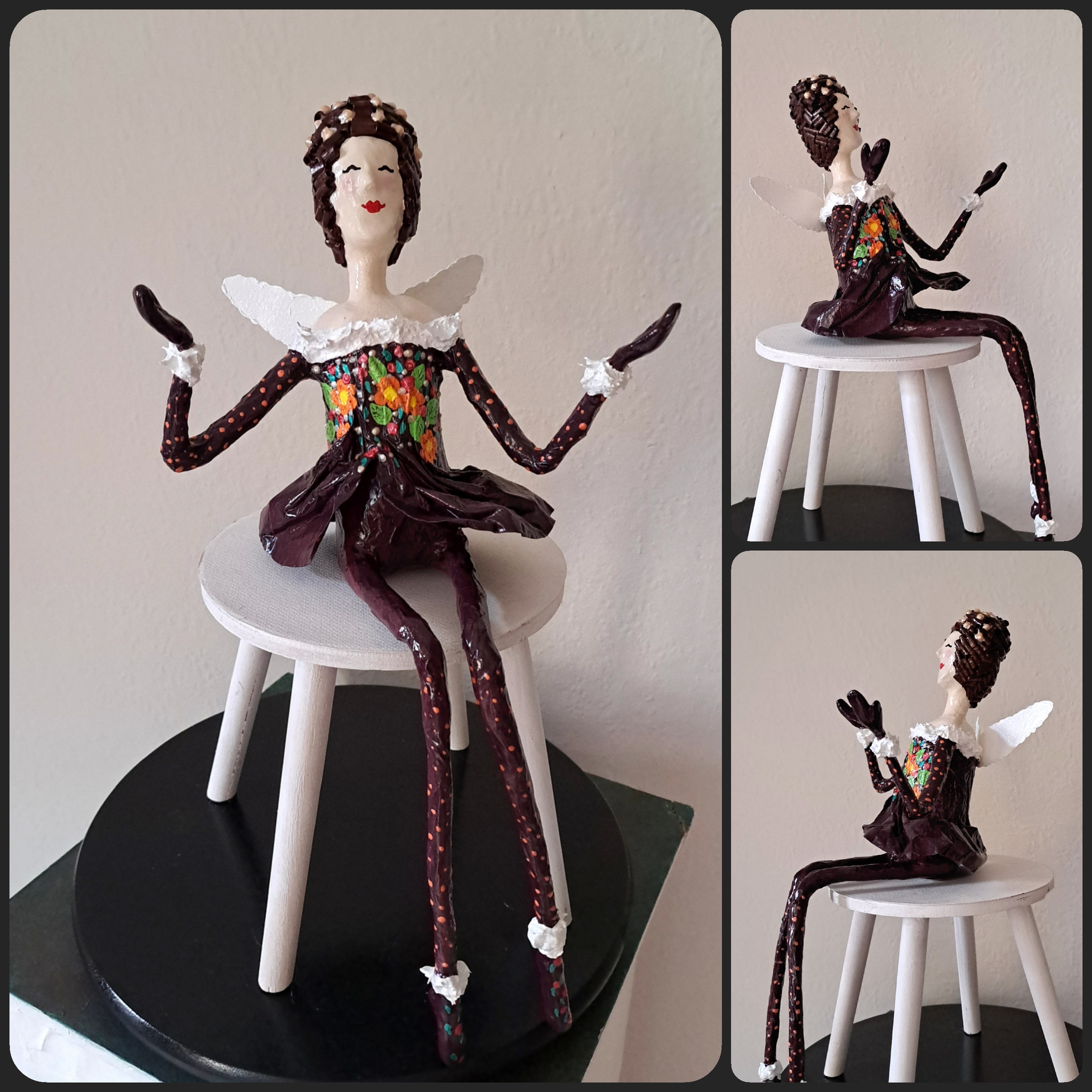 Inspiratiebronnen zijn vrouwen, mythologie, kleuren, symboliek en verhalen van vele culturen zijn een belangrijk aspect in haar sculpturen, happy angels en lampen. Papier-maché in allerlei vormen.