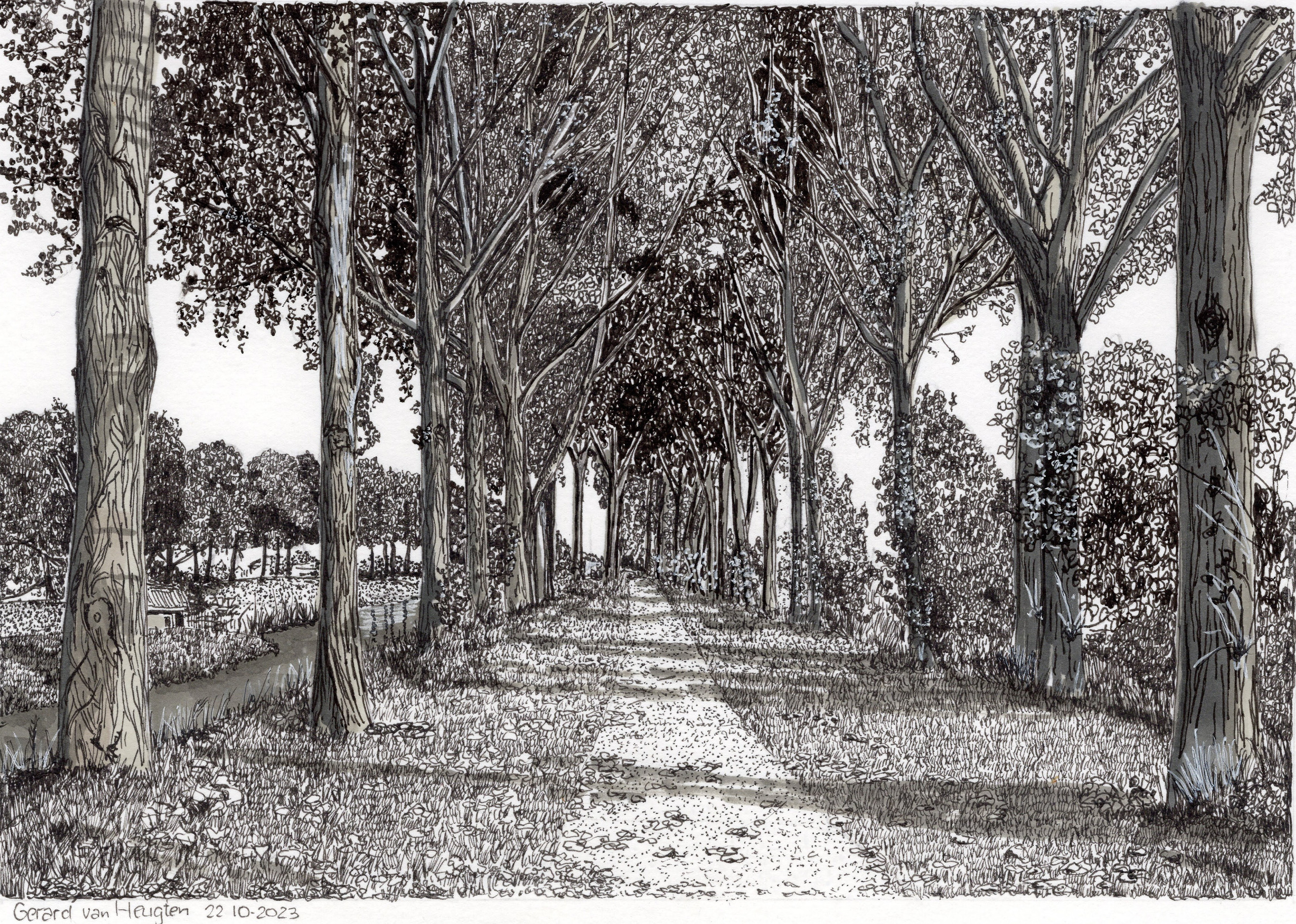 Realistisch Bomen Architectuur Sfeer Fineliner Pentekening