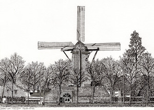 Realistisch Architectuur Sfeer Molen Fineliner Pentekening