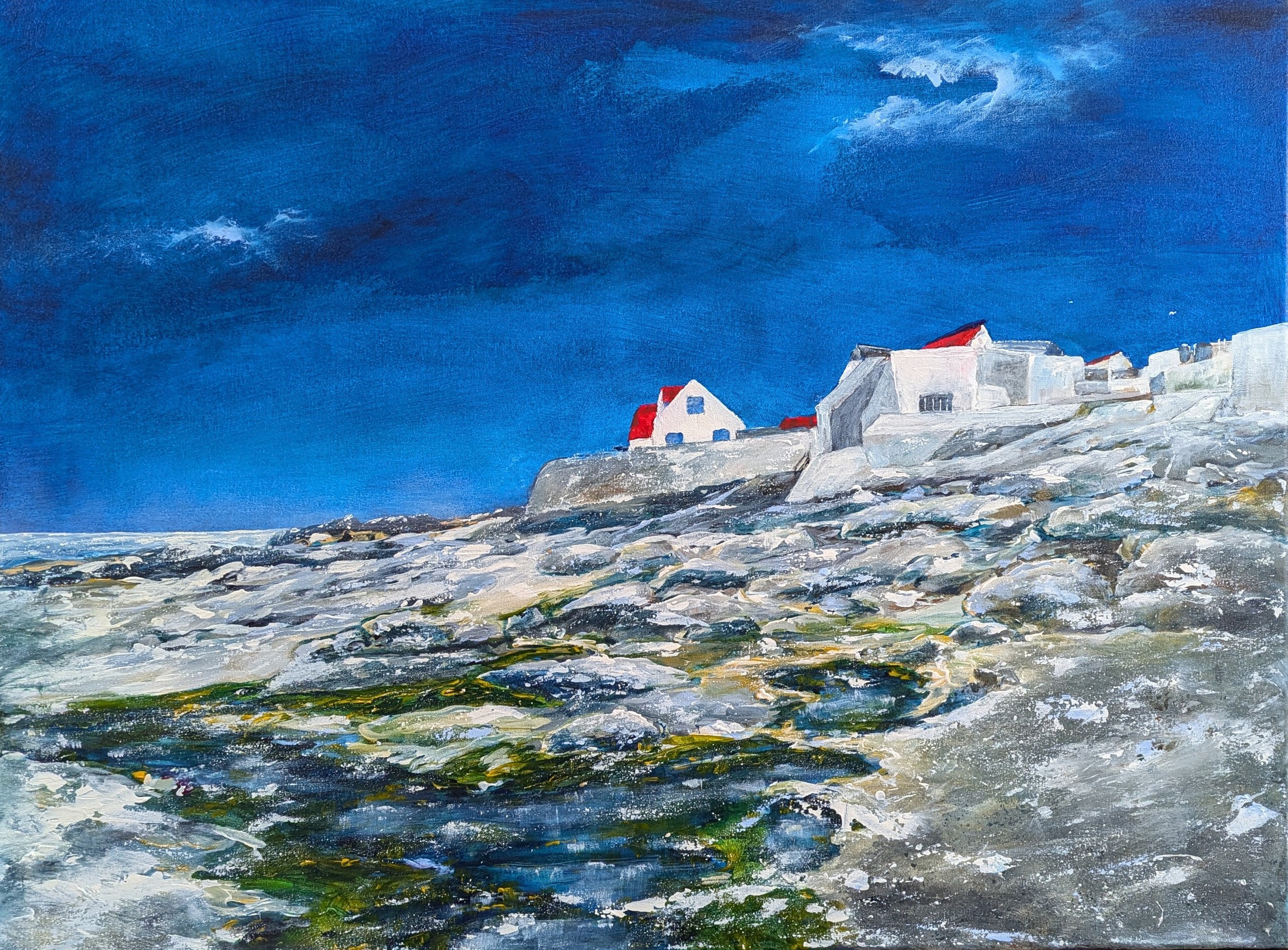 Altijd keer ik terug naar de kust. Het moeten magische krachten zijn die dat in gang zetten. Maar het is dan ook nooit saai, dat spel van de elementen. Het grensgebied tussen land en water inspireert me. Soms is het er rustig, een zomeravond gevoel gevend. Soms ruig en onheilspellend, levensbedreigend zelfs. Kortom: altijd geschikt om te verbeelden op doek of papier. Bijna jaarlijks bivakkeerden we aan de Cote d'Opale. Prachtige dorpen aan zee. Krijtrotsen en pittoreske strandjes en haventjes. Een van mijn favorieten is het dorp Audresselles, in de schaduw van Cap Gris Nez en Cap Blanc Nez. En de witte krijtrotsen van de Engelse kust bij helder weer zichtbaar.