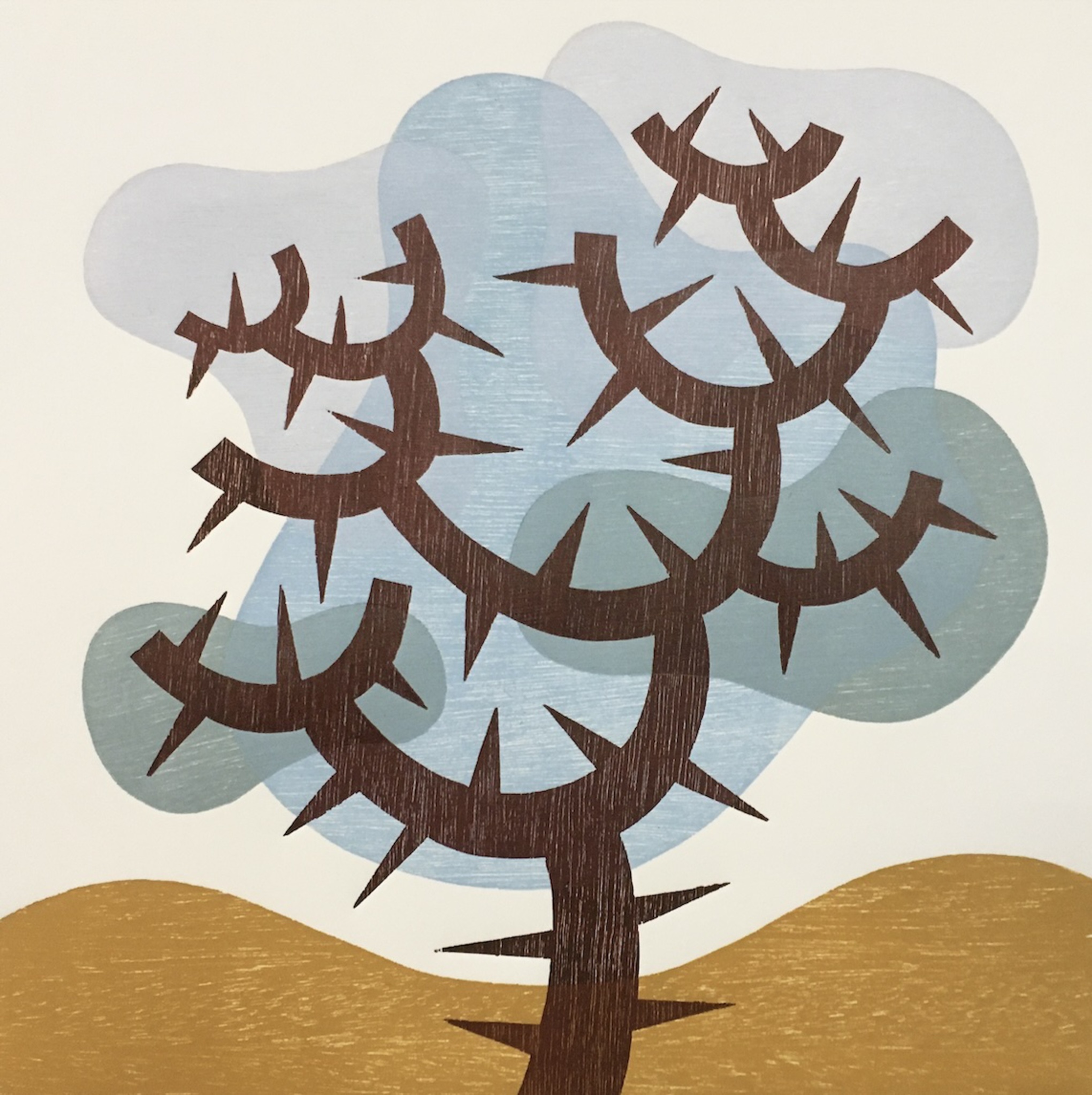 Doornboom - Thorn Tree Houtdruk - sjabloondruk op papier, 5 kleuren, oplage 3.