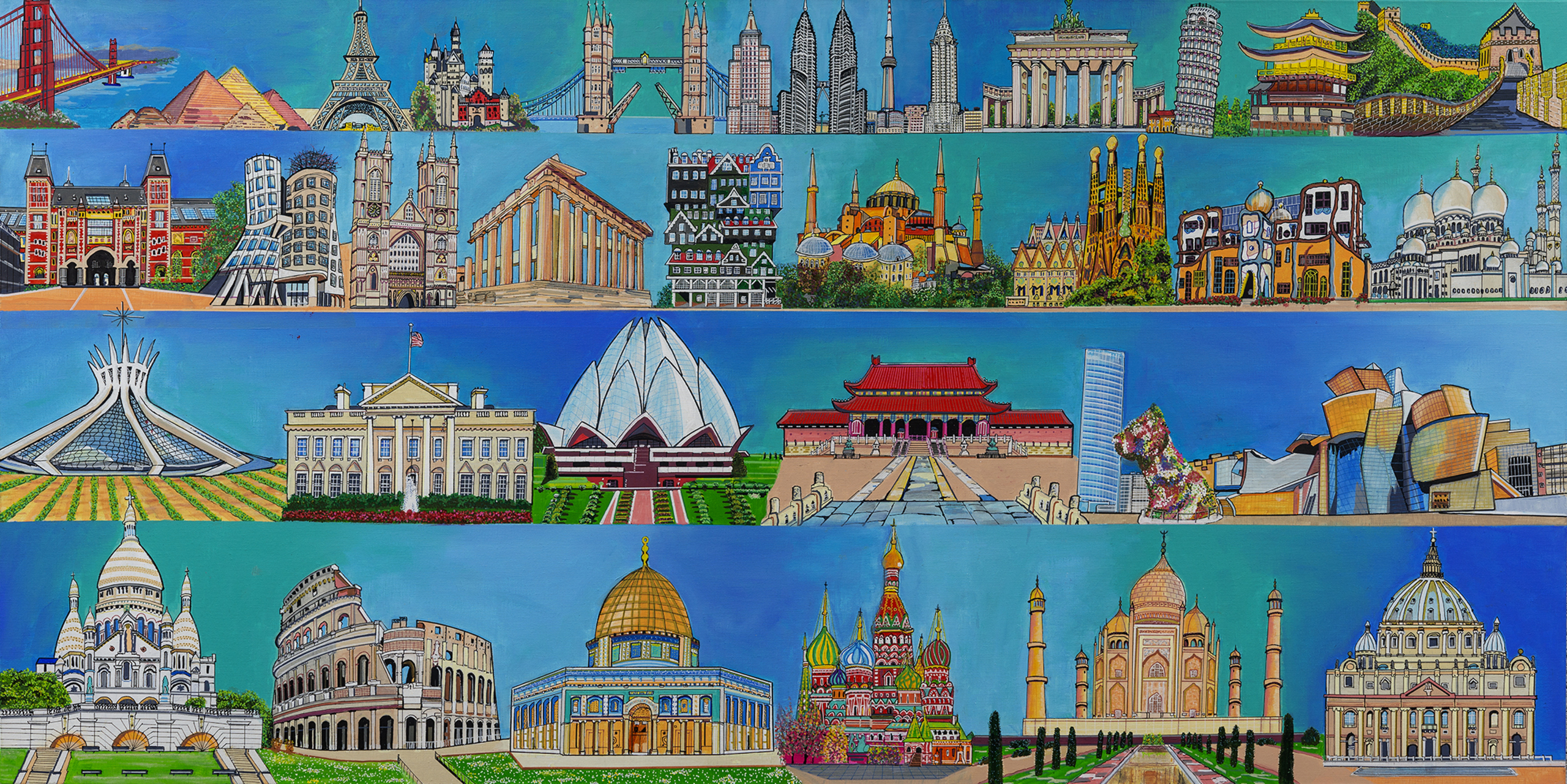 Er is best wat aan de hand in de wereld. Maar dat staat los van alle geweldige mooie gebouwen die ergens op de wereld staan. Welke herken jij? Te koop als gecertificeerde reproductie op linnen.