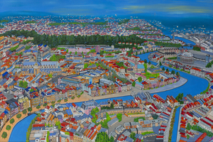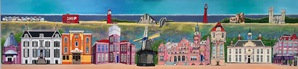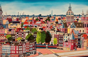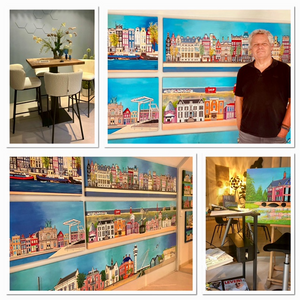 Ik (autodidact) schilder mijn werk meestal in primaire kleuren met acrylverf en gebruik daarbij allerlei materialen en attributen. Denk aan stadsgezichten en levensloopschilderijen Peter Mulder