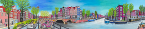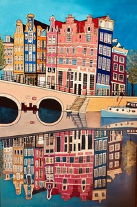 Misschien wel het onbekendste bekende plekje stukje Amsterdam. De hoek van de Brouwersgracht en de Prinsengracht. Oorspronkelijk heette deze brug Papeneilandbrug (naar het plaatselijke café) maar in de volksmond veranderde de naam doordat bakkers/baksters op de brug hun etenswarde aanprezen. Let ook op de reflectie van de gebouwen in het water. Te koop als gecertificeerde reproductie op linnen.