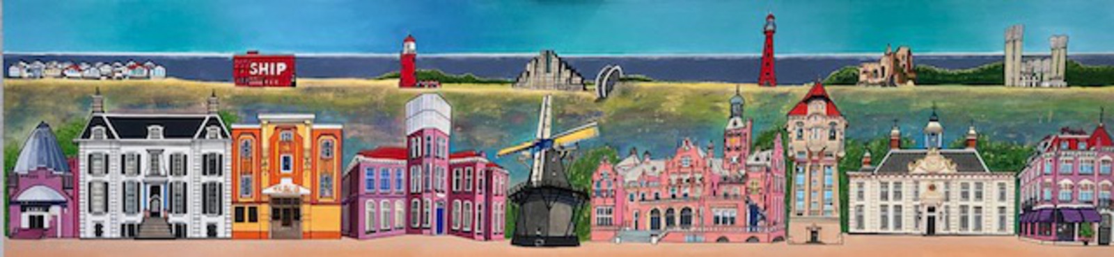 De soms rauwe 'echtheid' van IJmuiden maar ook de prachtige monumenten en beeldbepalende gebouwen in andere delen van de gemeente Velsen, zoals Driehuis en Santpoort Noord. Te koop als gecertificeerde reproductie op linnen.