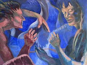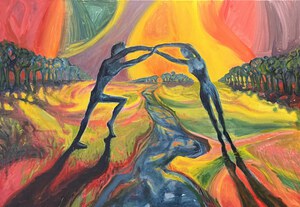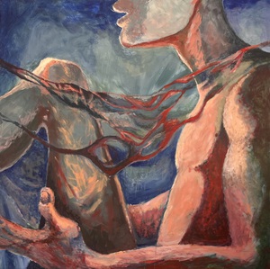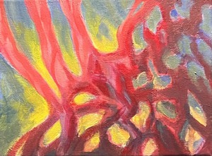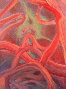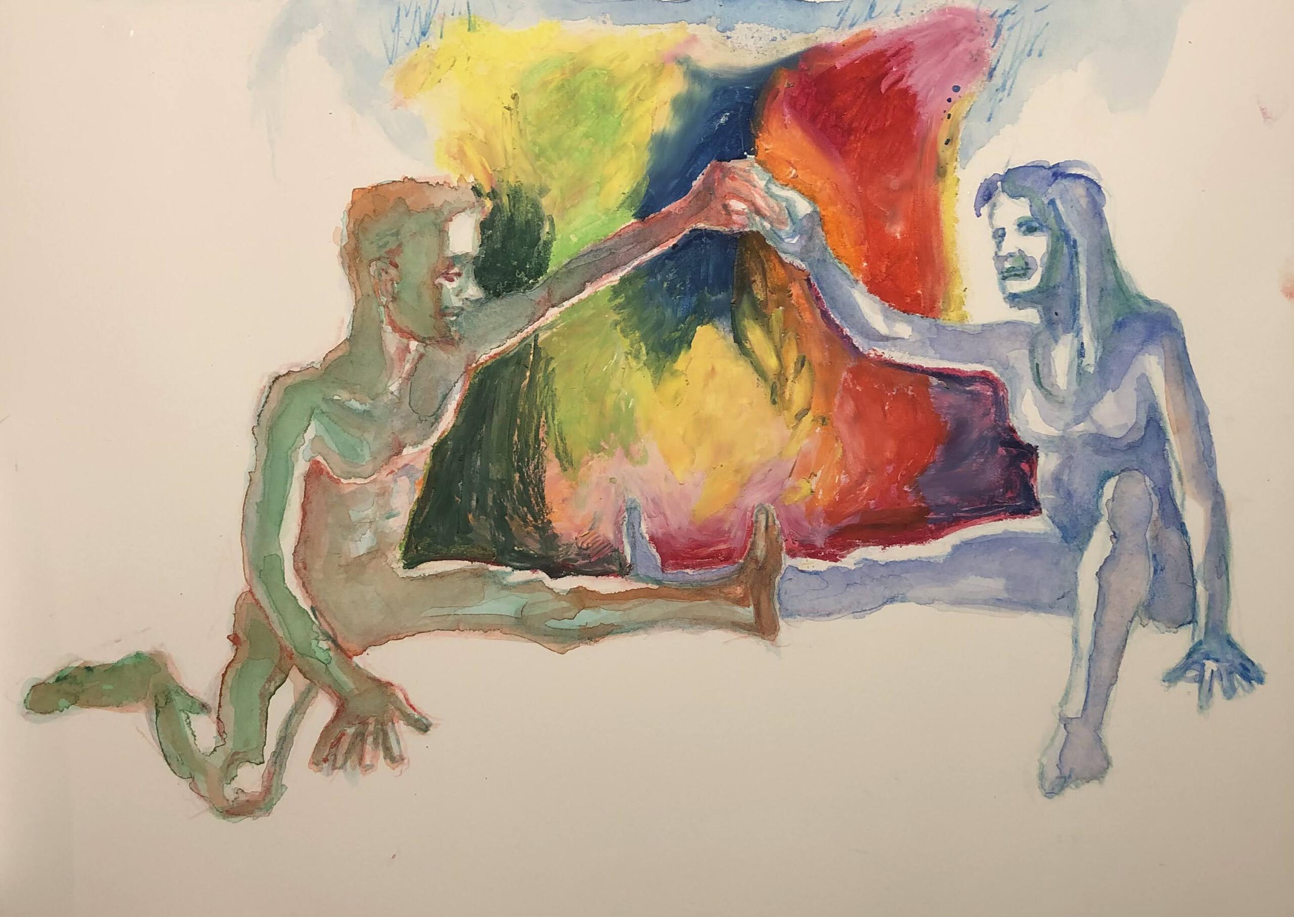 Mijn aquarellen en (acryl)schilderijen hebben vooral de natuurelementen en het menselijk lichaam als vertrekpunt. Ze lopen vaak in elkaar over: waar begint het een en eindigt het ander?
