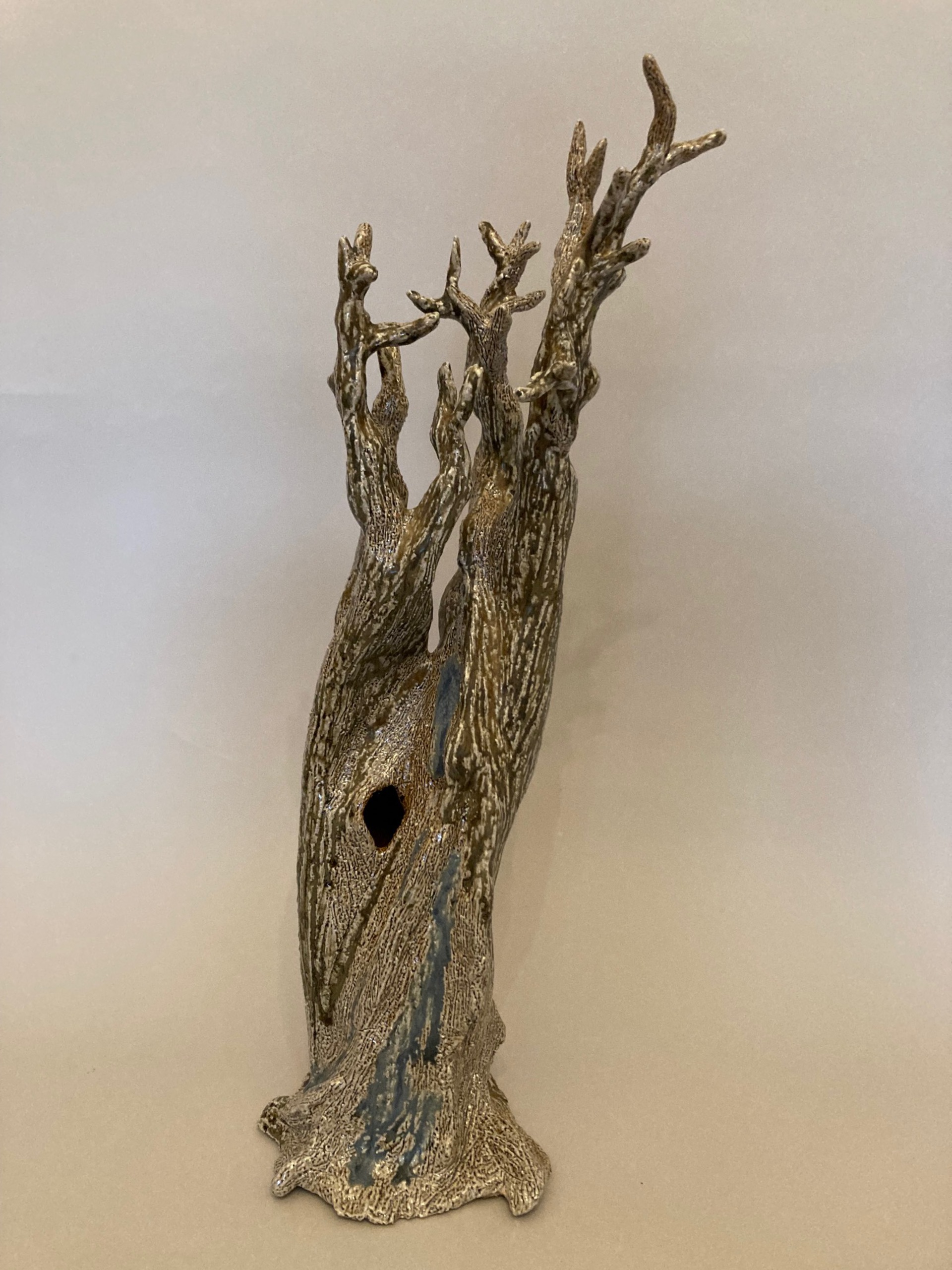 De objecten die ik maak zijn handgevormd. Ze zijn vooral bedoeld om naar te kijken, niet om te gebruiken. Ik hou van de huid van de klei en laat die graag zien. Door niet altijd het hele oppervlak te glazuren blijft het ruige uiterlijk van het materiaal zichtbaar. De laatste jaren heb ik veel met asglazuur gewerkt. Die as is steeds anders van samenstelling, waardoor het glazuur een grote mate van onvoorspelbaarheid heeft. Dat houdt het spannend.