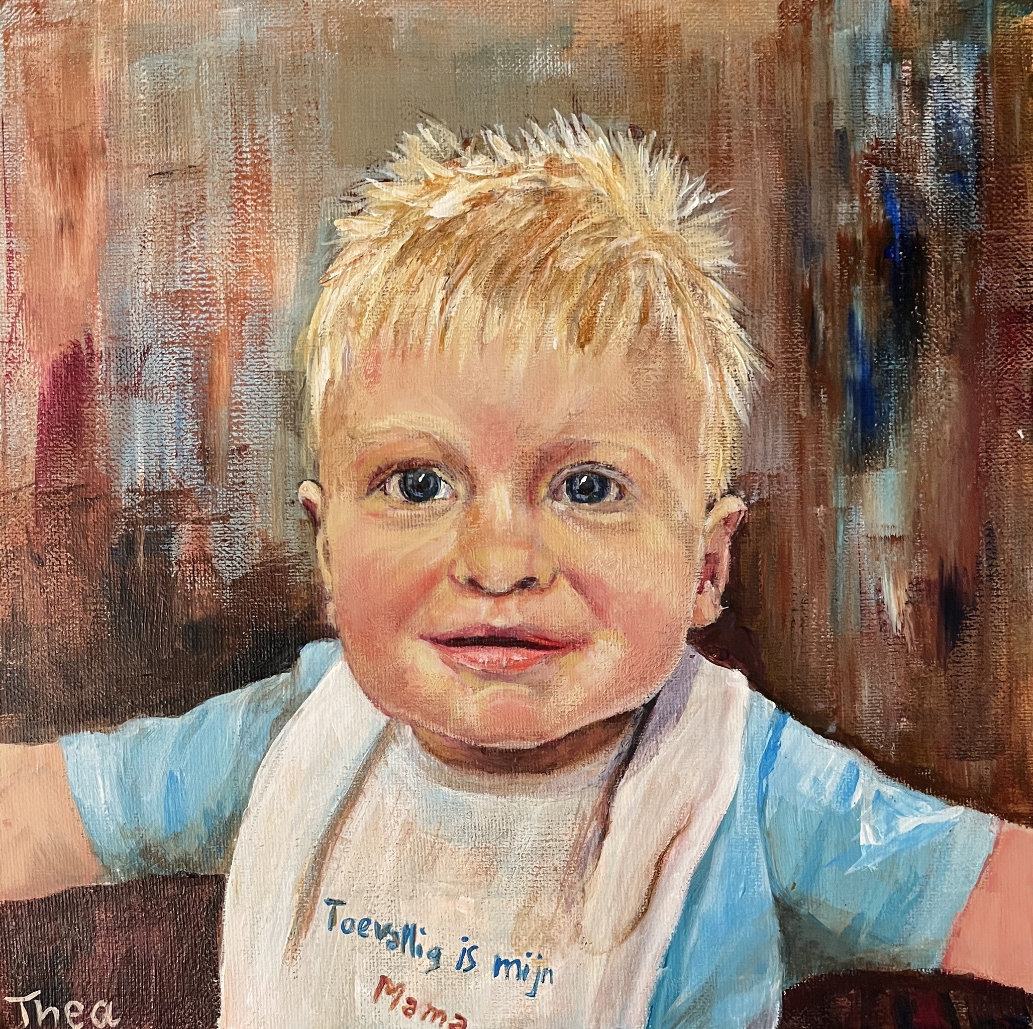 Glenn, portretje Kleinzoon, acryl op canvas 30x30x3 cm