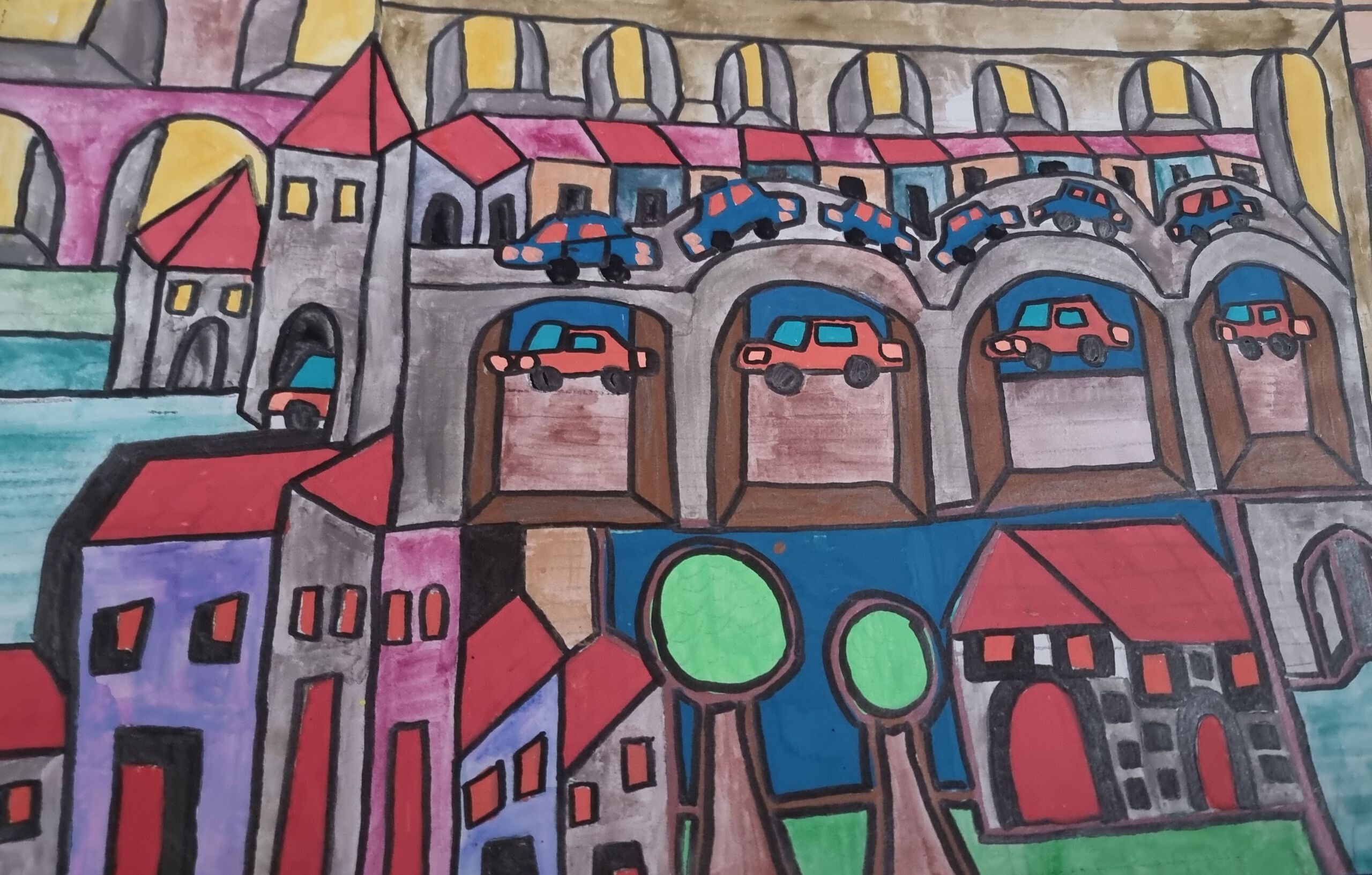 Verdwaal in de stad. Deze heb ik even een tijdje stil laten liggen omdat ik niet zo goed wist wat ik aan moest met deze tekening. Na een tijdje deze aan de kant hebben gelegd, wat wel eens nodig is als kunstenaar, heb ik deze tekening weer eens voor het daglicht gepakt. Uiteindelijk met wel wat advies wat niet verkeerd is, heb ik deze tekening weer opgepakt en heb daar een draai aangegeven. Ook in deze tekening zie je van alles, maar dat maakt het zo leuk. Veel kijkplezier.